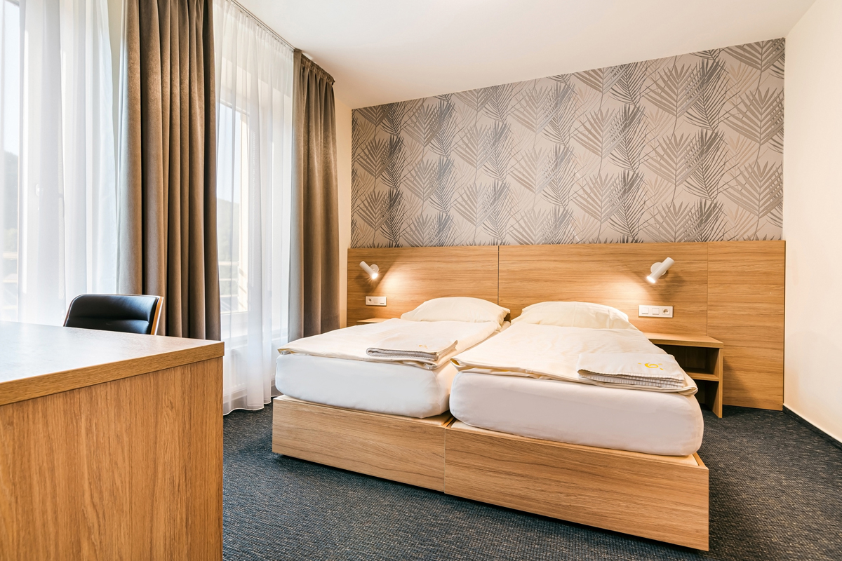 25 m² - pokoj s manželskou postelí či s oddělitelnými lůžky a 1 přistýlka pro 1 dítě do nedovršených 12 let, sociální zařízení, balkon