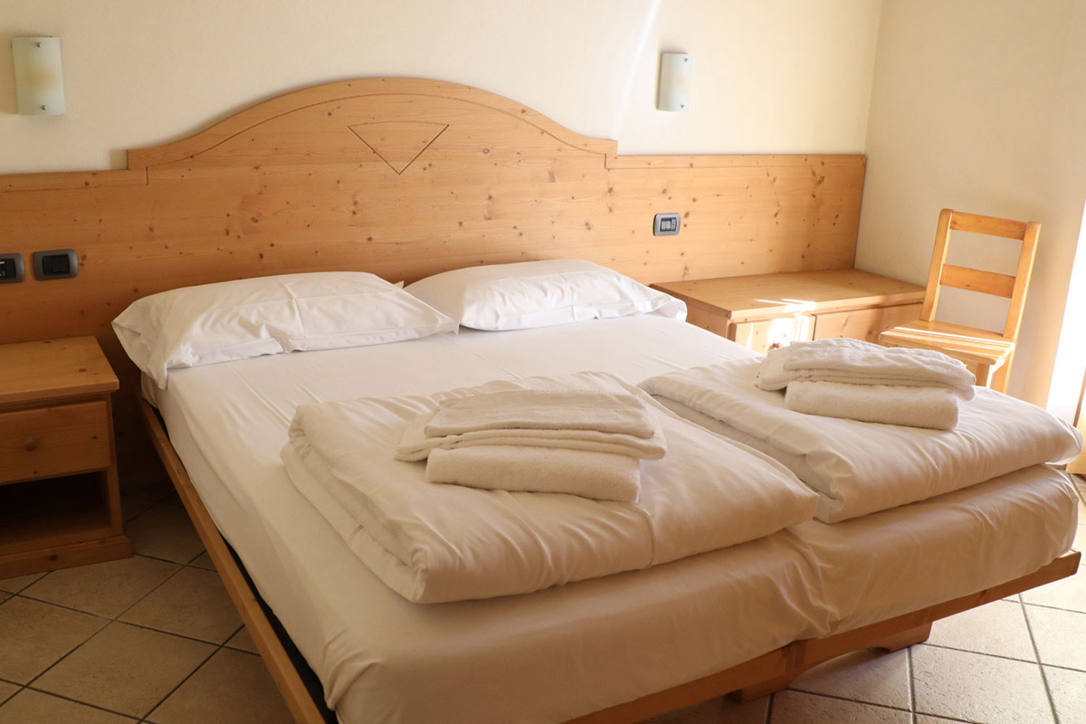 43 m² - 1 ložnice s manželskou postelí (u 2 apartmánů velikosti 1,5 běžného lůžka), 1 ložnice se 2 samostatnými lůžky, obývací pokoj s kuchyňským koutem a rozkládacím gaučem pro 2 osoby, sociální zařízení se sprchou, balkon (s výjimkou 1 apartmánu)