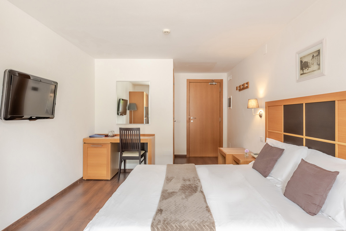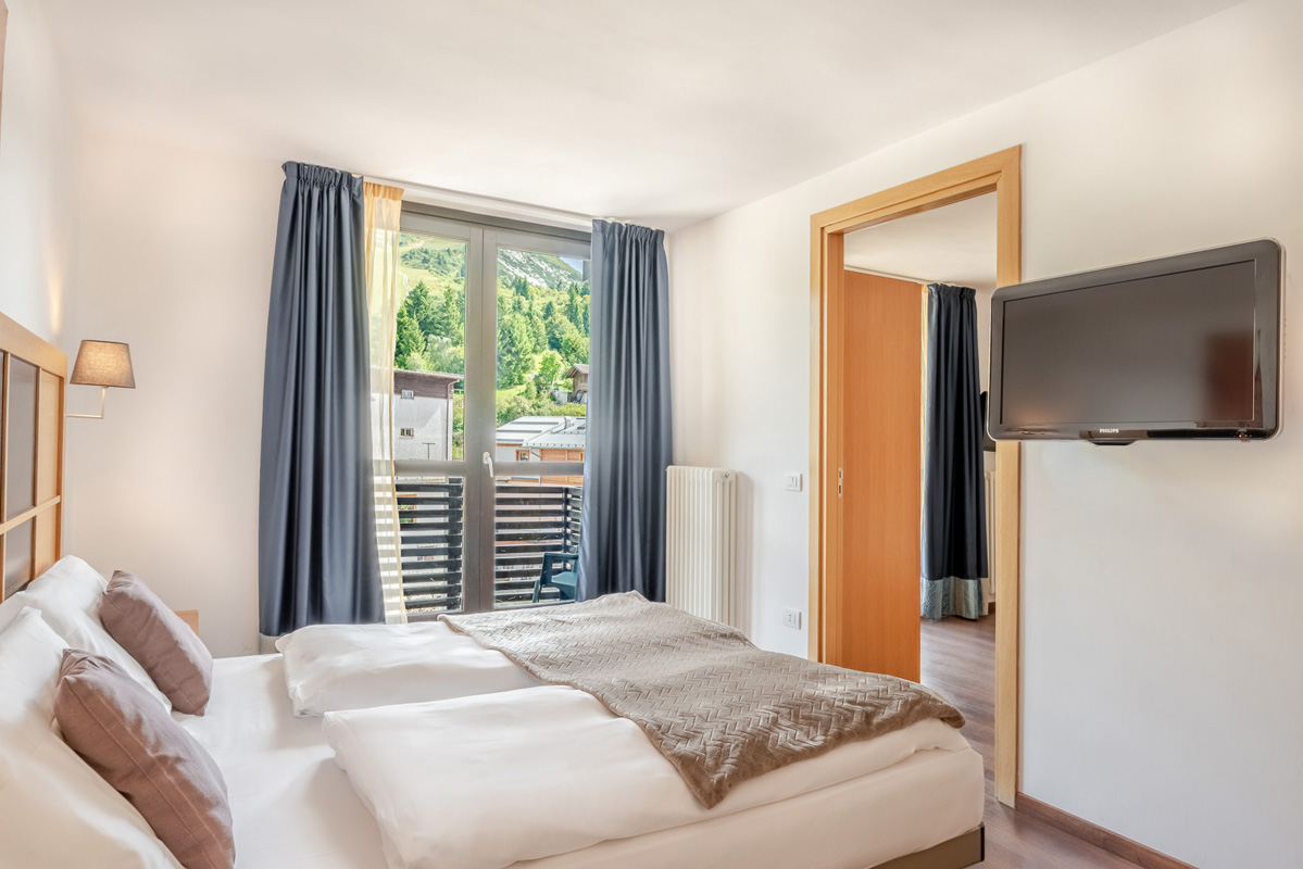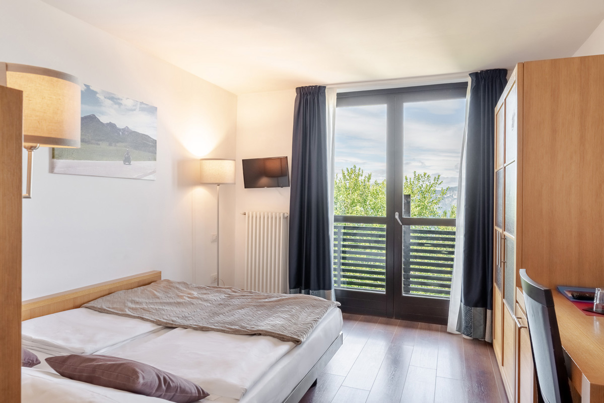 pokoj s manželskou postelí a případně gaučem či přistýlkou pro 1 osobu, sociální zařízení zpravidla se sprchou, zpravidla balkon