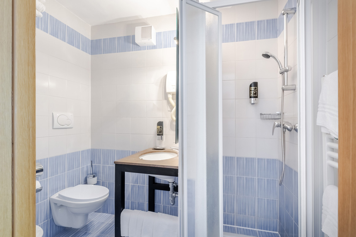 pokoj s manželskou postelí šíře 140 cm, sociální zařízení zpravidla se sprchou