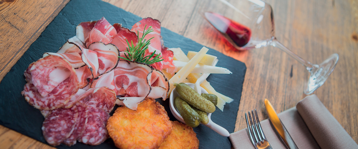 servírované menu s výběrem ze 3 teplých předkrmů a 3 hlavních jídel s přílohou, salátový bufet, servírovaný dezert či sýry, ovoce formou malého bufetu, nápoje za poplatek; 1x týdně typická večeře
