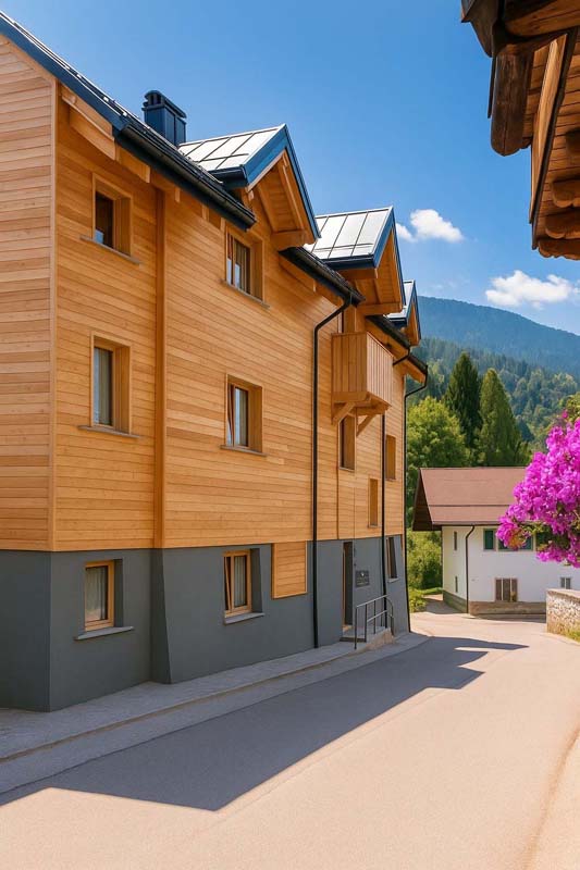 35 až 40 m² - 1 ložnice s manželskou postelí, obývací pokoj s kuchyňským koutem a rozkládacím gaučem pro 2 osoby (160x200), sociální zařízení se sprchovým koutem typu walk-in, balkon (pouze u jednoho apartmánu)