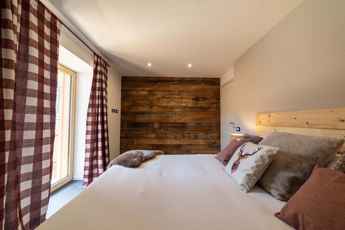 49 m² - 1 ložnice s manželskou postelí a částečně odděleným samostatným lůžkem, obývací pokoj s kuchyňským koutem a rozkládacím gaučem pro 2 osoby (160x200), v rámci neuzavřeného vyvýšeného patra malá ložnice s manželskou postelí, sociální zařízení se sprchovým koutem typu walk-in, 2x balkon; apartmán se nachází ve druhém patře; v apartmánu není možný pobyt se psem