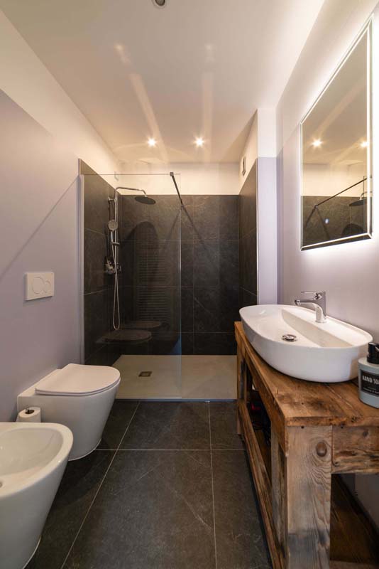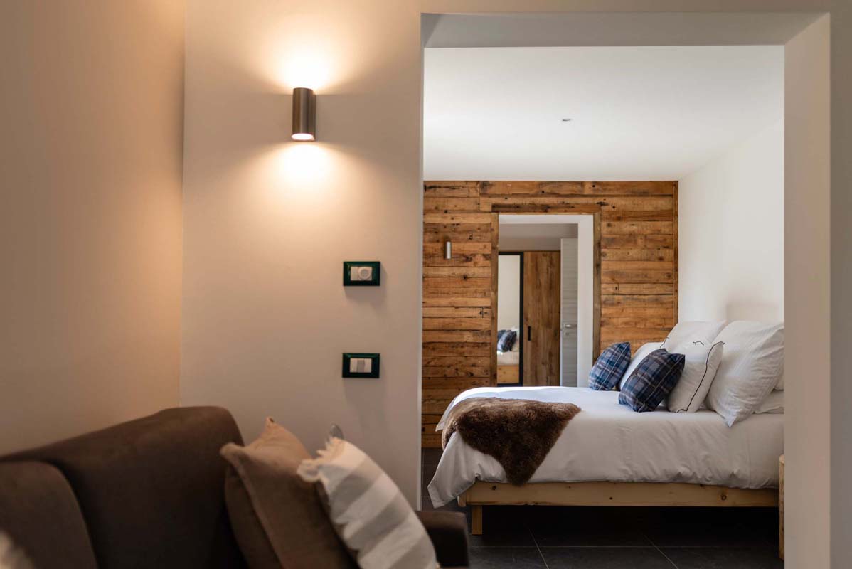 62 m² - 1 ložnice a manželskou postelí a částečně odděleným samostatným lůžkem, 1 ložnice s 1 samostatným lůžkem, obývací pokoj s kuchyňským koutem a rozkládacím gaučem pro 2 osoby (160x 200),2x sociální zařízení se sprchovým koutem typu walk-in; apartmán se nachází v přízemí