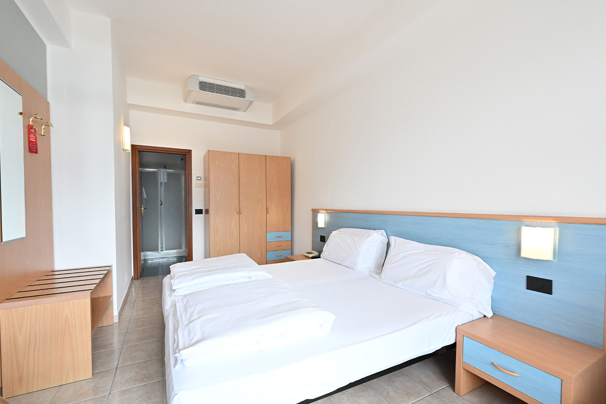 15 m² - pokoj s manželskou postelí či 2 samostatnými lůžky a případně 1 dalším samostatným lůžkem či rozkládacím křeslem pro 1 osobu, sociální zařízení se sprchou, zpravidla balkon či terasa