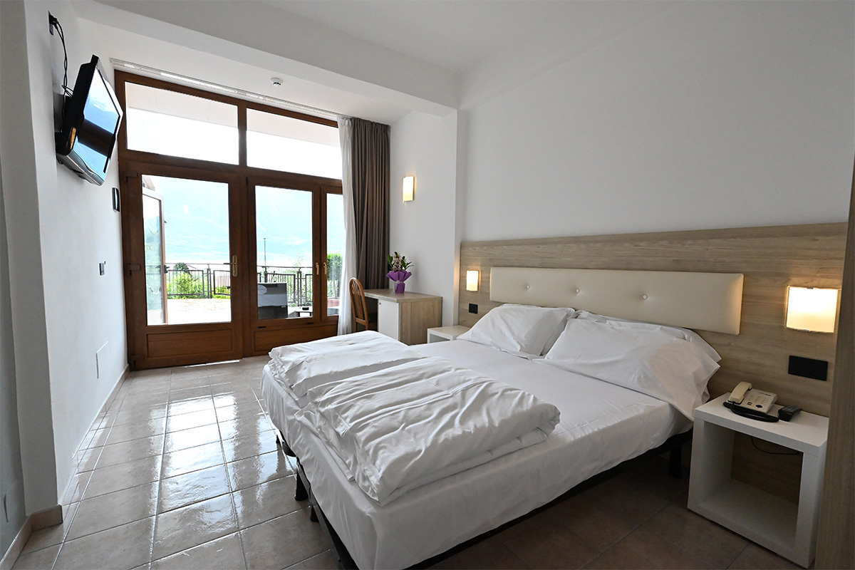 17 m² - pokoj s manželskou postelí či 2 samostatnými lůžky a případně 1 dalším samostatným lůžkem či rozkládacím křeslem pro 1 osobu, sociální zařízení se sprchou, balkon či terasa s výhledem na jezero