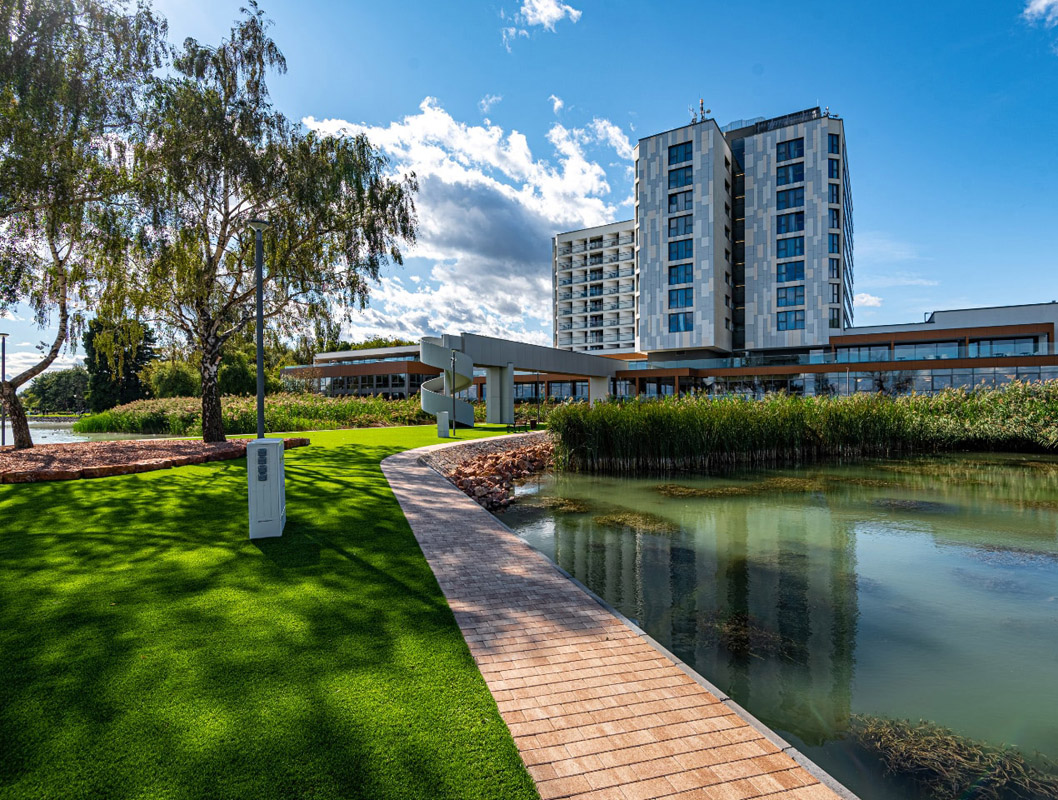 Hotel Helikon Keszthely je moderní hotel po kompletní rekonstrukci, situovaný v malebném a historickém městě Keszthely přímo na břehu jezera Balaton. Nabízí celkově 176 komfortních pokojů, celoročně otevřené rozsáhlé wellness zázemí a v letních měsících vlastní travnatou pláž s přímým vstupem do jezera Balaton.
