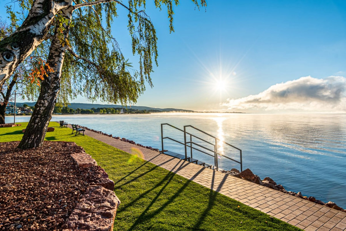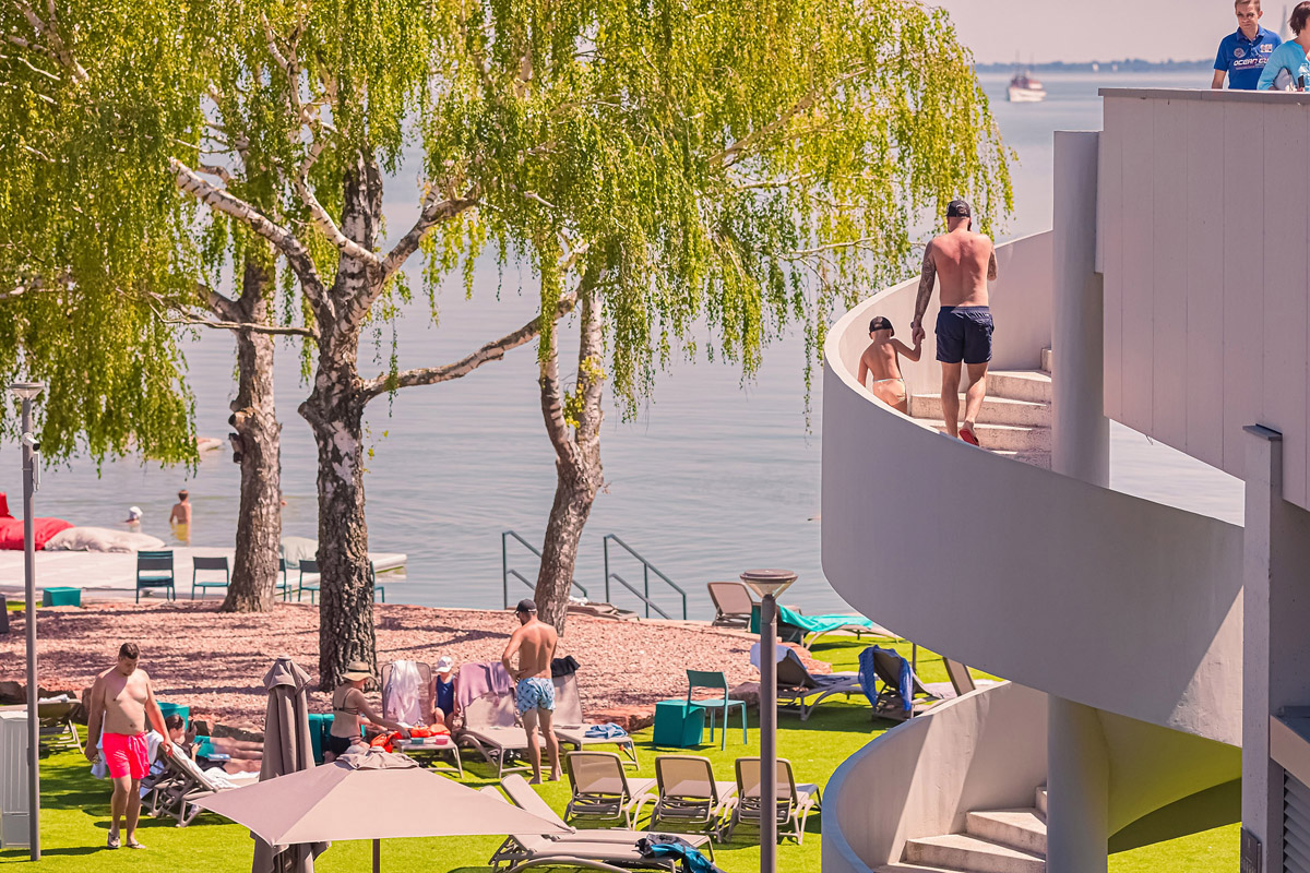 hotel s vynikající polohou přímo na břehu Balatonu s vlastní soukromou pláží