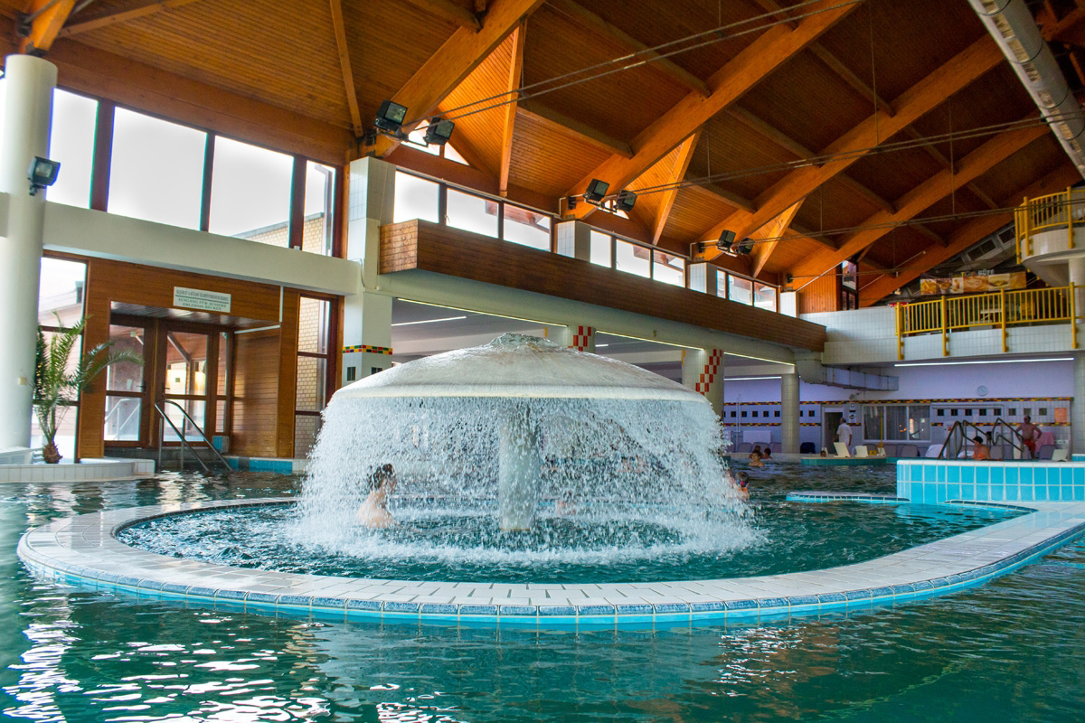 vstup do městských lázní Zalakaros (propojeno vyhřívanou chodbou), v rámci lázní vnitřní a venkovní bazény, termální bazény, dětské bazény, aquapark, velká zahrada, posilovna, saunový svět*, léčebné terapie*, masáže*, hotel má v rámci městských lázní vlastní vyhrazenou zahradou s lehátky, v lázních probíhá pravidelná údržba bazénů, vždy je ale zajištěn provoz většiny z nich