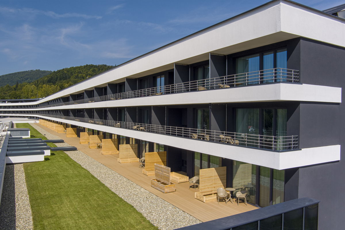 nový a ekologicky navržený hotelový komplex v polských Beskydech s krásným výhledem na panorama horského masivu
