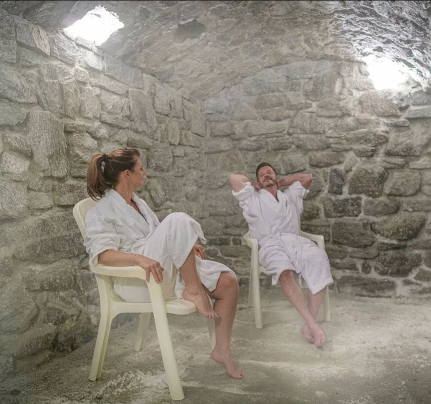 termální bazén 12 x 8 m, vířivka, finská sauna, bylinná sauna, pára, solná jeskyně, horizontální solárium*, relaxační koutek s lehátky, Kneippův chodník, masáže*, lázeňské kúry*, posilovna, sál pro aerobic s programem, vodní gymnastika, taneční večery s živou hudbou