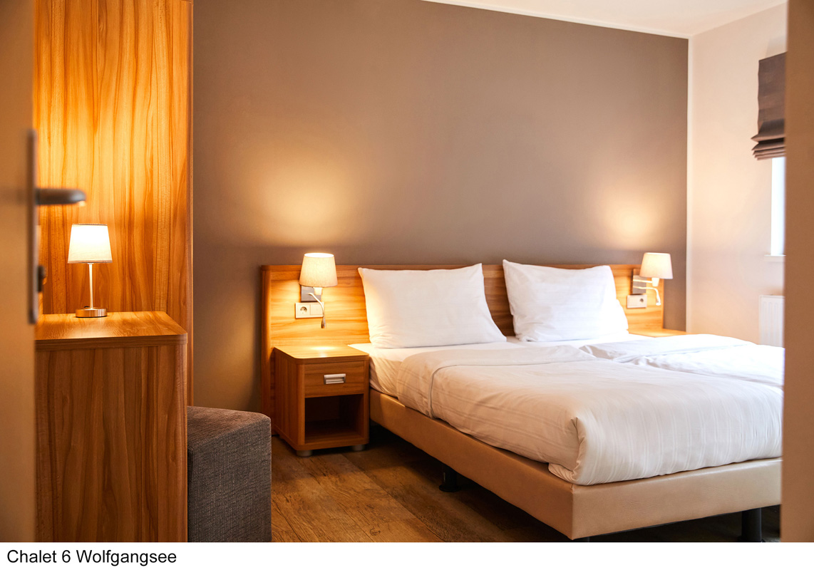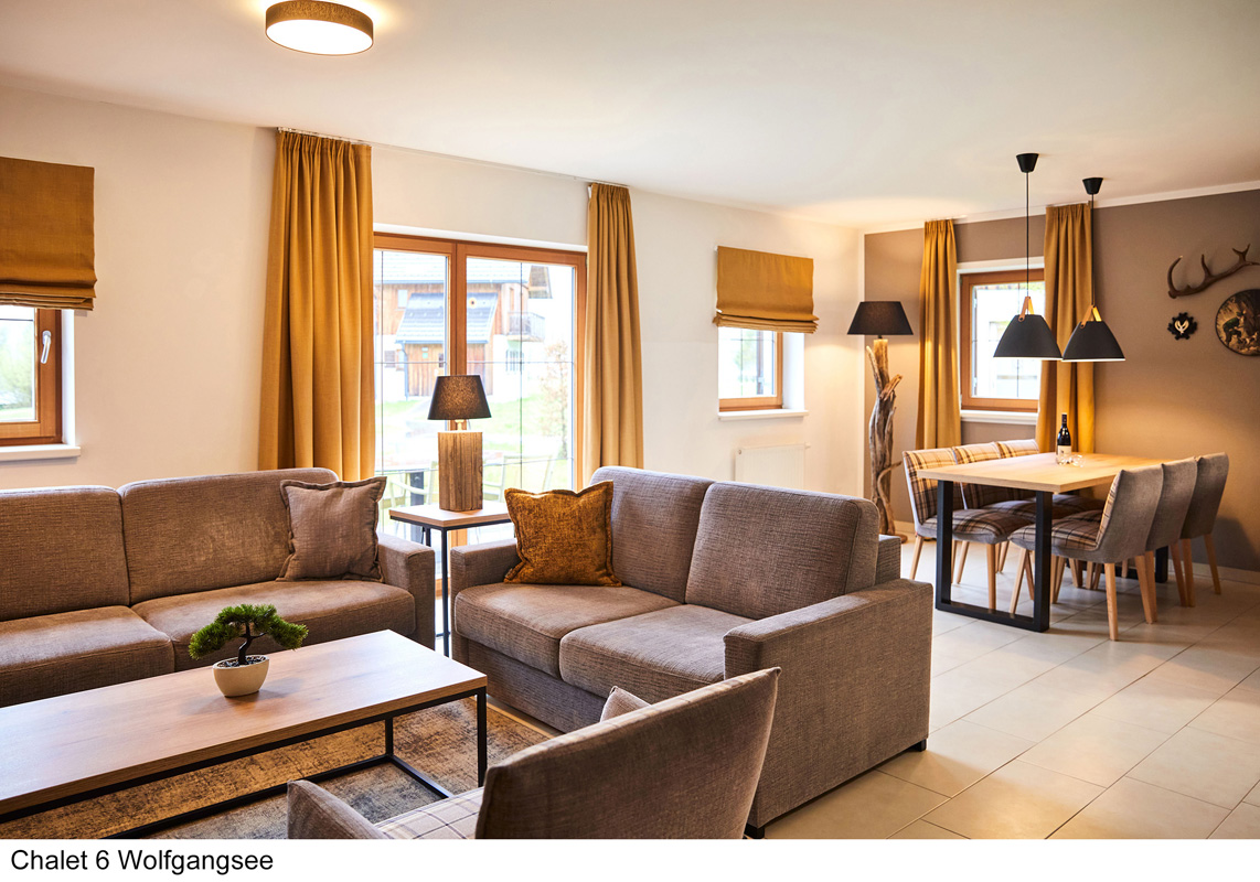 140 m² - 1. podlaží chaletu: ložnice s manželskou postelí či 2 samostatnými lůžky a sociálním zařízením se sprchou, obývací pokoj s kuchyňským a jídelním koutem, gauč, samostatné WC, terasa; 2. podlaží chaletu: 3 ložnice s manželskou postelí či 2 samostatnými lůžky a sociálním zařízením se sprchou, privátní sauna se sprchou, 2 balkony (z nich 1 společný pro 2 ložnice)