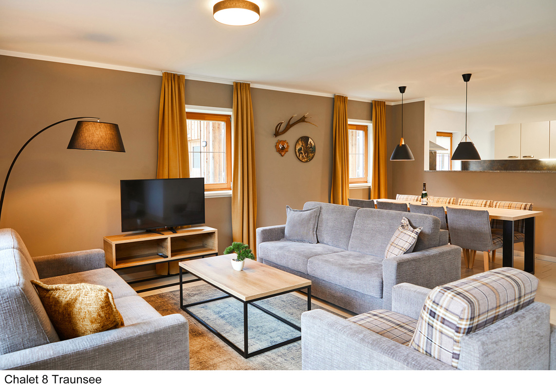 Obertraun, centrum - 500 m, jezero Hallstätter See - max. 400 m (v závislosti na poloze chaletu), lanovka Krippenstein - 3,6 km, Hallstatt - 5 km, Bad Ischl - 25 km