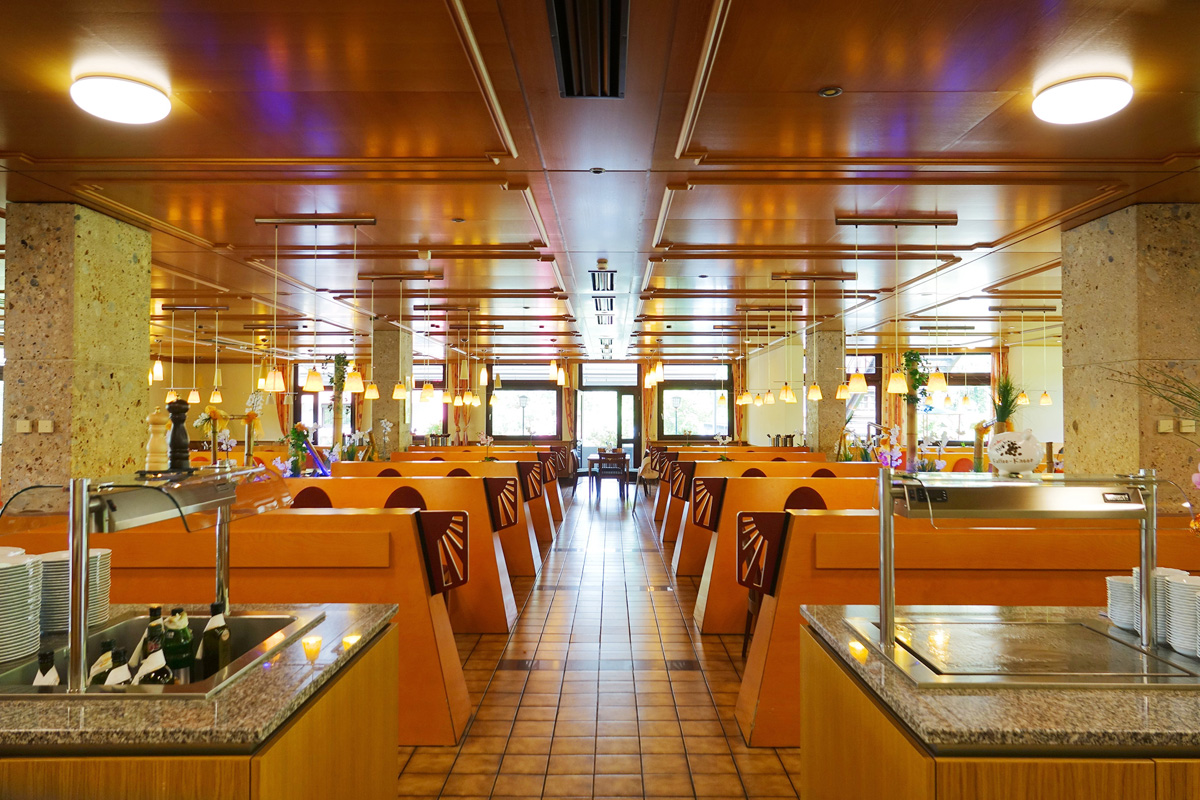 formou bohatého bufetu (probíhá zpravidla ve 2 časových intervalech); od 08.00 do 21.00 hodin vybrané nealkoholické nápoje (limonády, minerální voda, káva, čaj), pivo a víno pouze v době obědů a večeří (neplatí v restauraci u jezera); ostatní nápoje za poplatek