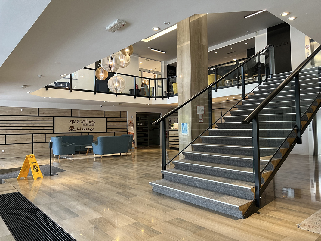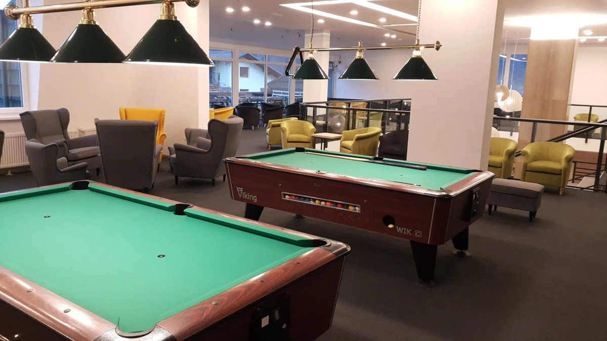 recepce, restaurace, bar, konferenční sál až pro 100 osob, úschovna lyží a kol, místnost pro úschovu zavazadel, výtah, dětská herna, vyhrazené parkoviště, wi-fi připojení k internetu