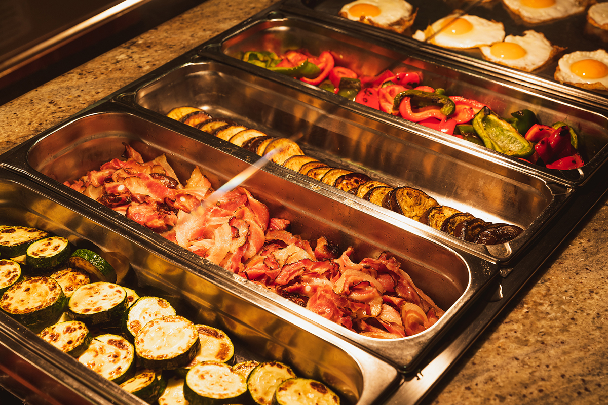 formou mezinárodního bufetu v hotelové restauraci; nápoje za poplatek