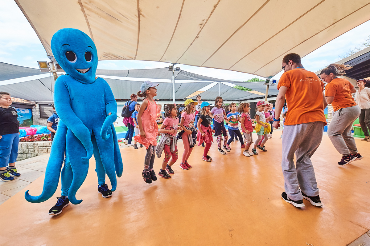 venkovní i vnitřní bazén, dětský bazén, lehátka a slunečníky u bazénu (v omezeném množství), posilovna ve vedlejším hotelu Maestral, plážový volejbal*, tenisový kurt* s půjčovnou vybavení*, stolní tenis*, půjčovna jízdních kol*,minigolf*, paintball*,vodní sporty*, hřiště na padel, fotbalové hřiště, Aquapark Istralandia – 4 km (vstupenky k dispozici na recepci hotelu)
