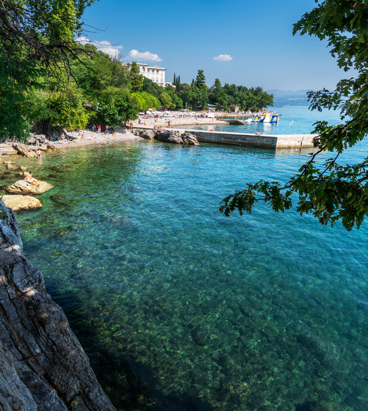 Volosko, centrum / Opatija - 2,5 km, pláž kamenitá s betonovými deskami - 600 m, letiště Rijeka – 37 km, Pula – 85 km