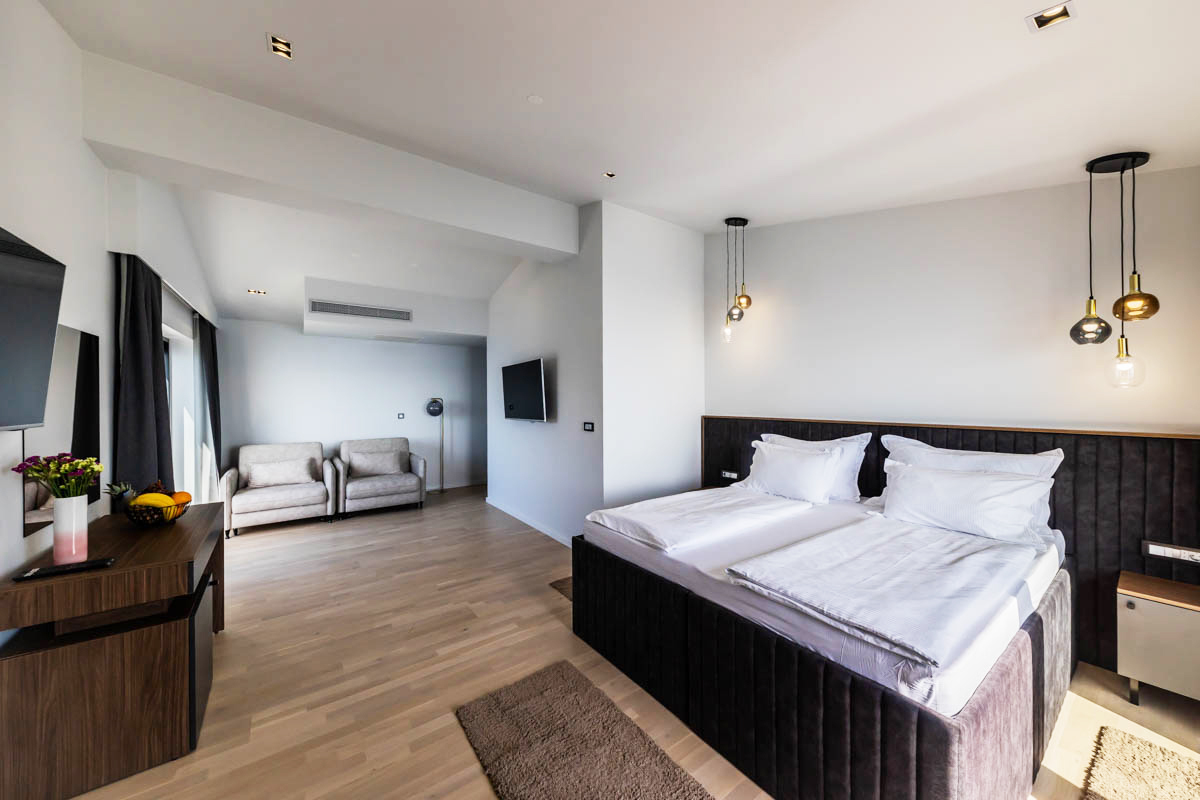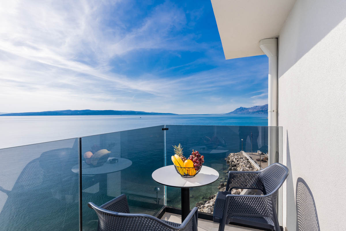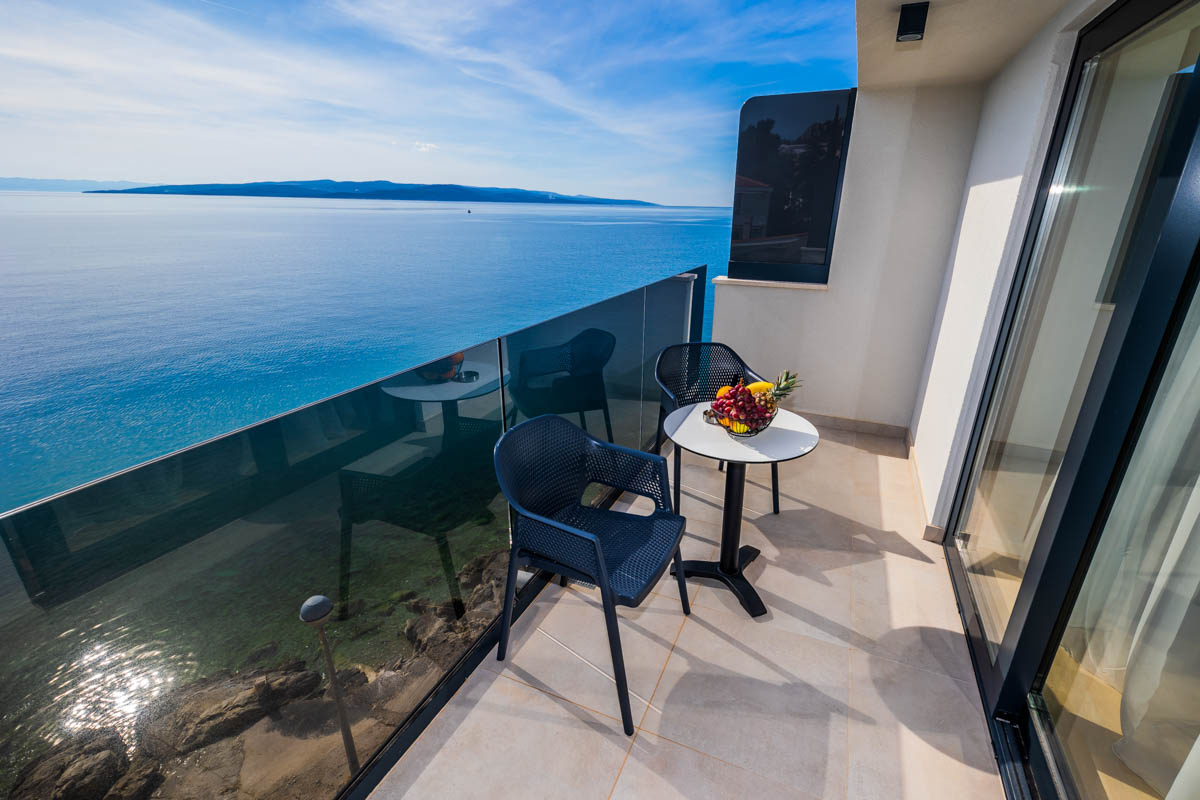 24 m² – pokoj s manželskou postelí, sociální zařízení se sprchou, balkon orientovaný na mořskou stranu