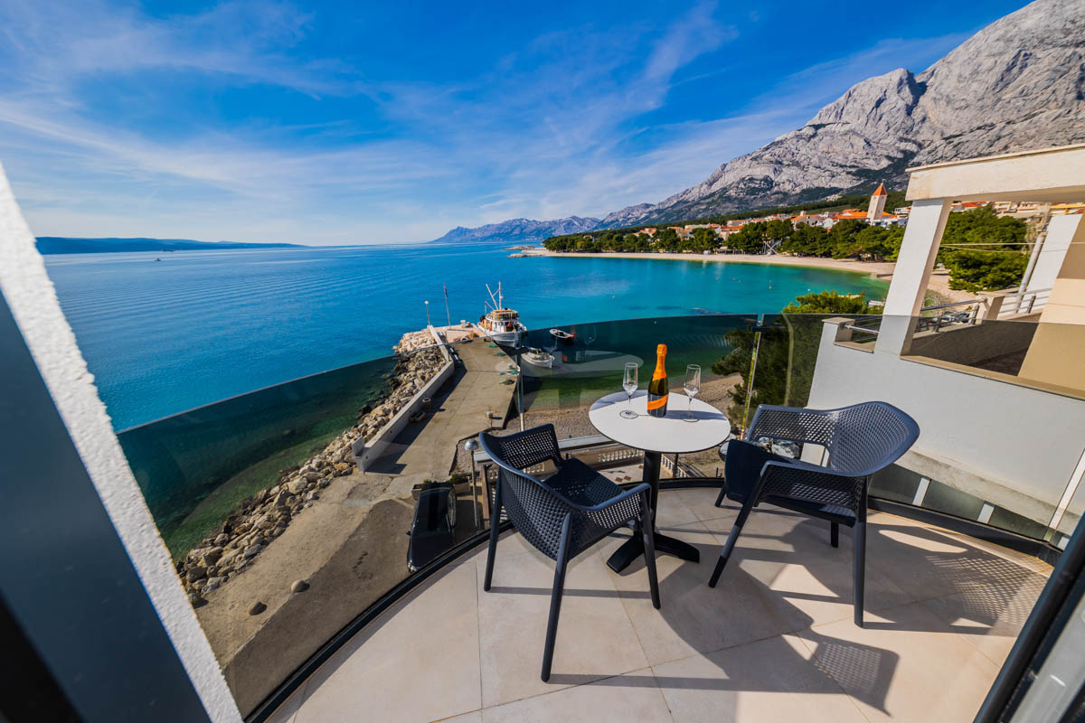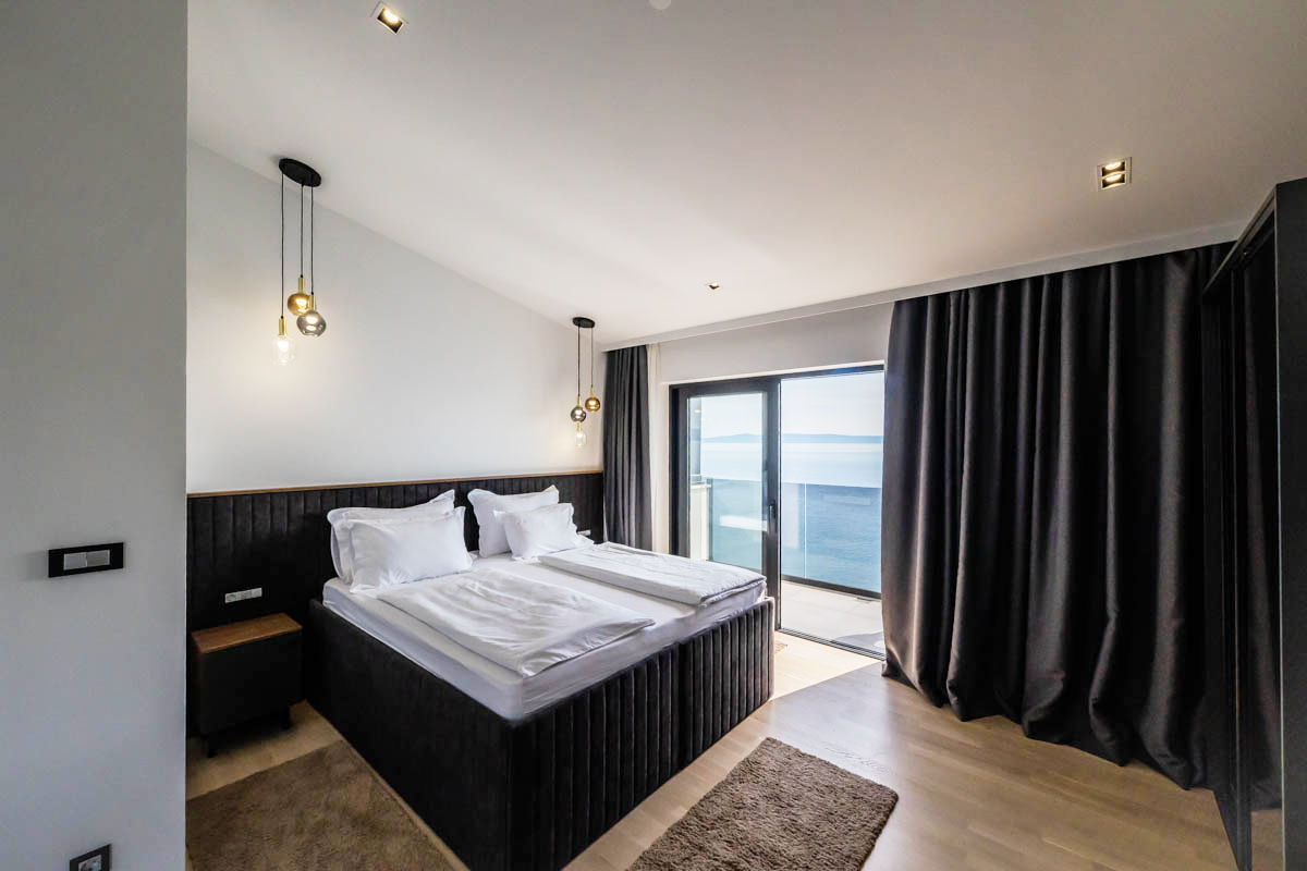 40 m² - pokoj s manželskou postelí a se dvěma samostatnými přistýlkami formou rozkládacího gauč, sociální zařízení se sprchou, balkon s nádherným výhledem na moře
