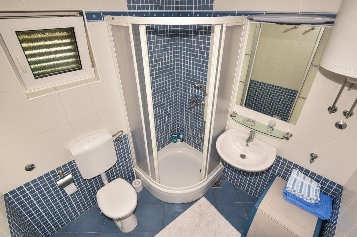 75 m² - jedna ložnice s manželskou postelí, druhá ložnice s oddělenými lůžky, obývací pokoj s vybaveným kuchyňským koutem s možností přistýlky formou rozkládacího gauče, sociální zařízení se sprchou, balkon s výhledem na moře