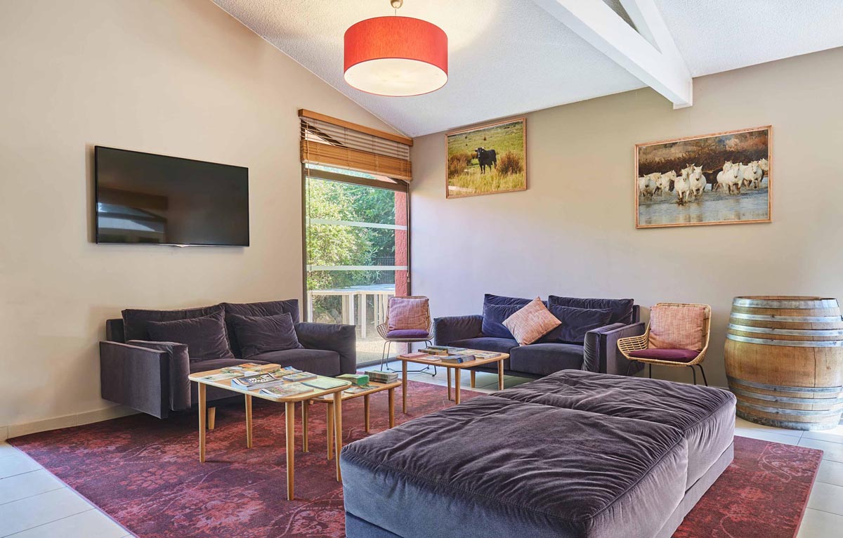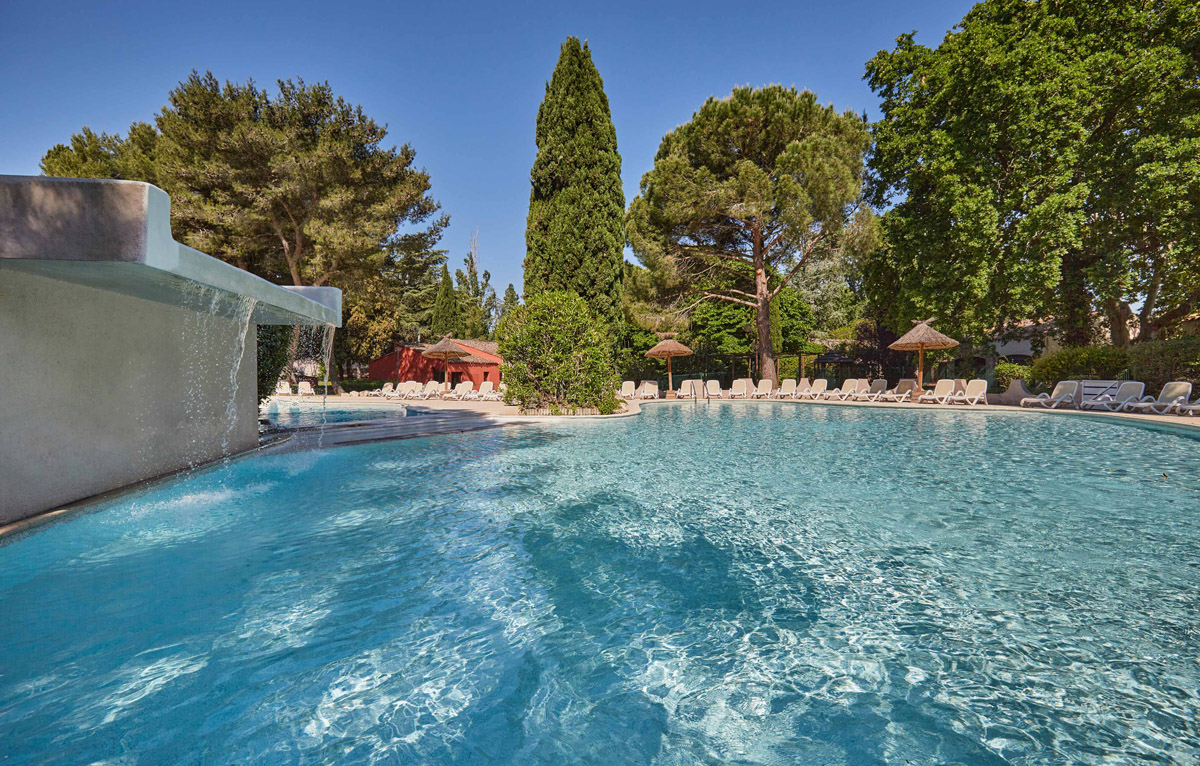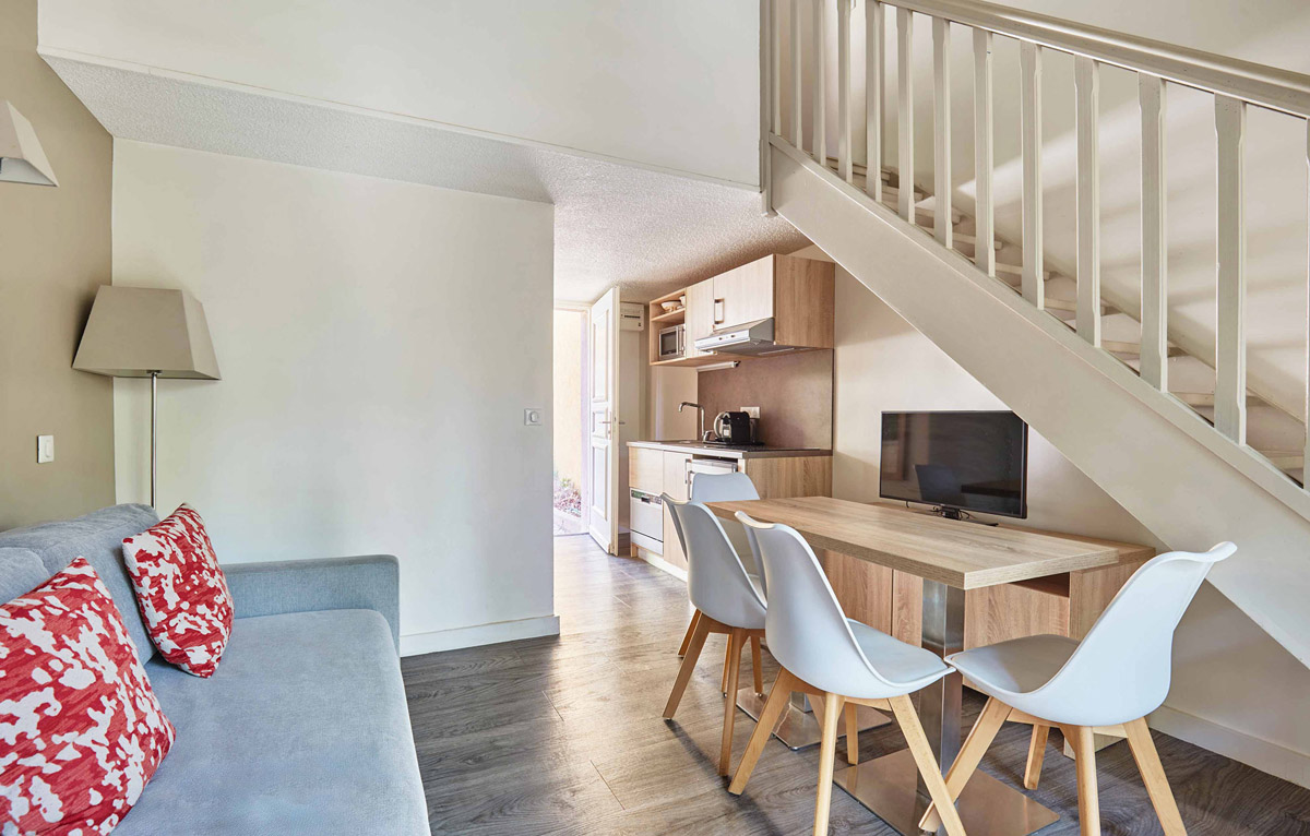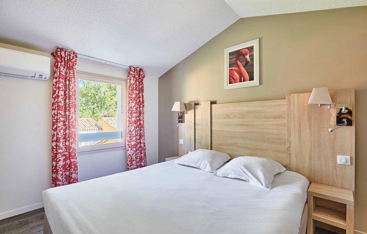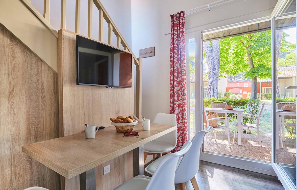 residence sestávající se z menších provensálských řadových domků obklopených bohatou zelení v rámci prázdninového residenčního komplexu 35 ha Le Village Camarguais, klimatizované nadstandardní apartmány vždy s terasou