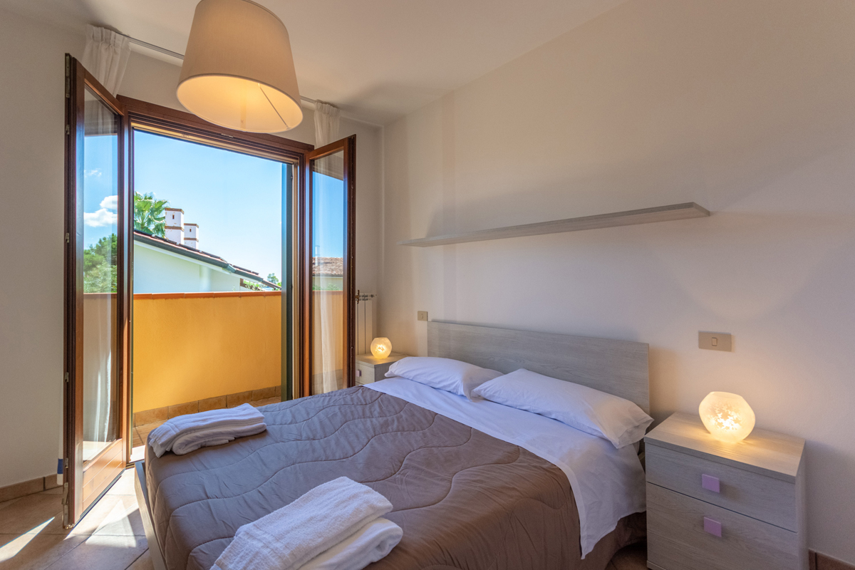 80 m² – polovina jednopatrové vilky v části Valle da Pesca, v blízkosti jezdeckého centra; v přízemí 1 ložnice s manželskou postelí, obývací pokoj s kuchyňským koutem, sociální zařízení se sprchou, veranda s venkovním krbem s grilem, zahrada; v patře 1 ložnice se 2 samostatnými lůžky, sociální zařízení se sprchou; 2 parkovací místo u doma
