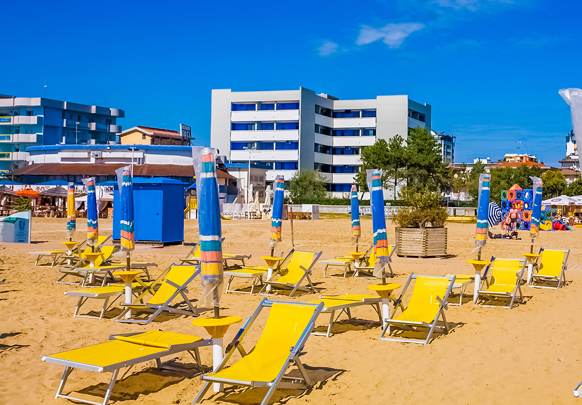 plážový servis: sestává ze slunečníku, lehátka a plážového křesla; nabízen je na převážné většině pláží v Bibione