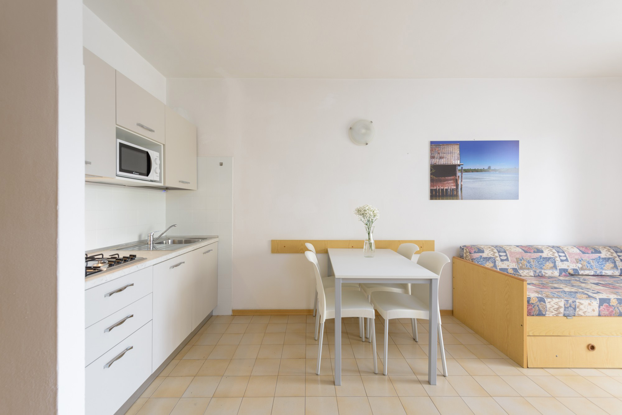 30 až 35 m² - obývací pokoj s kuchyňským koutem a rozkládacím gaučem pro 2 osoby a gaučem pro 1 osobu či rozkládacím křeslem pro jednu osobu, sociální zařízení se sprchou, balkon či terasa