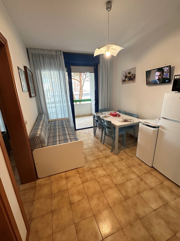 45 m² - 1 ložnice s manželskou postelí, 1 ložnice se 2 samostatnými lůžky, obývací pokoj s kuchyňským koutem a rozkládacím gaučem pro 2 osoby, sociální zařízení se sprchou, balkon