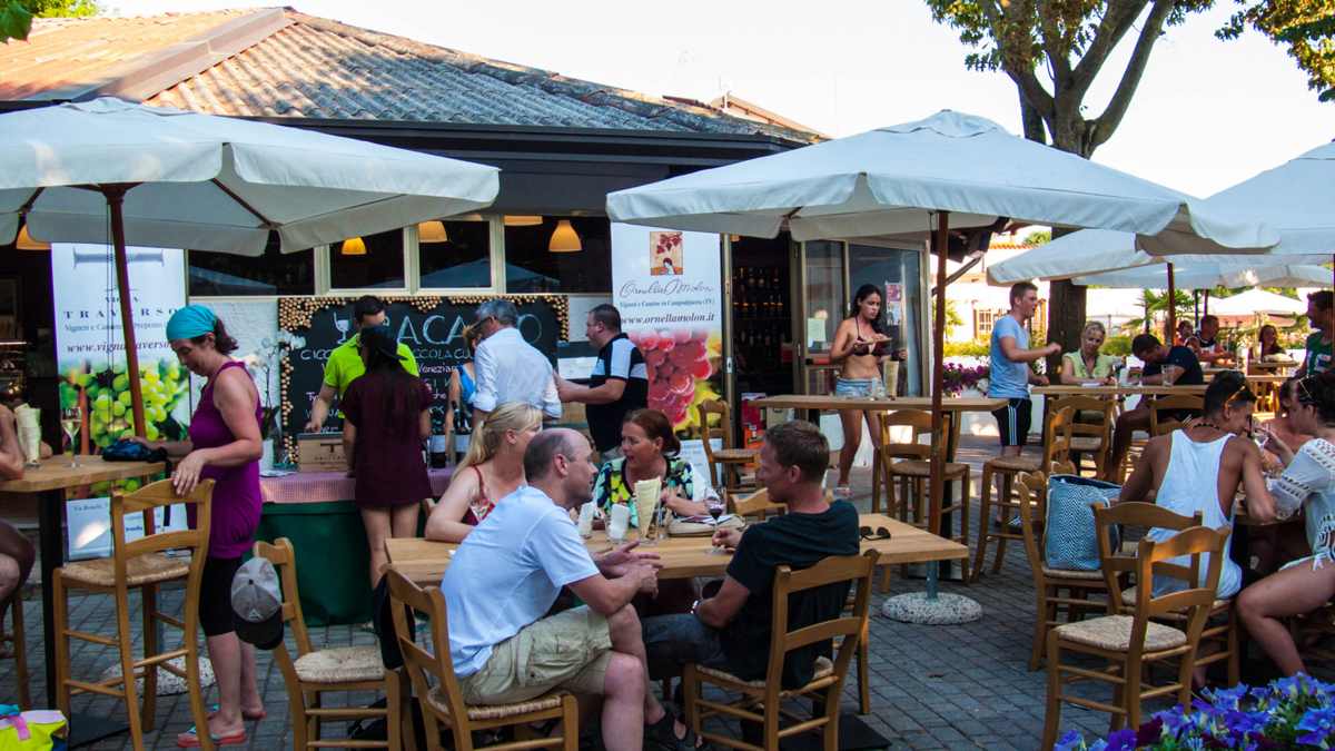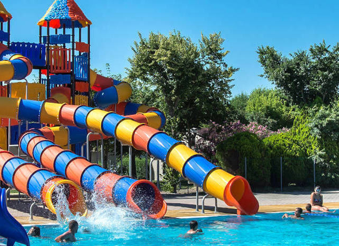 recepce, bar a restaurace, 2 pizzerie, snack bar, jogurteria a zmrzlinárna, dětský koutek, dětský klub a animační programy (cca od konce května do začátku září), vyhrazené parkoviště, prádelna*, myčka aut*, minimarket, obchod s ovocem, zeleninou, suvenýry, tabákem, divadlo, herny, diskotéka, lékařská pohotovost (v hlavní sezóně), kadeřnictví*, bankomat, wi-fi připojení k internetu*, místní motorový vláček