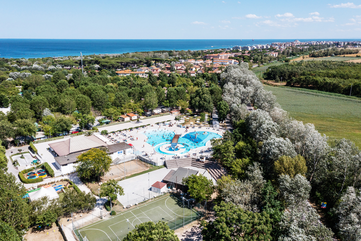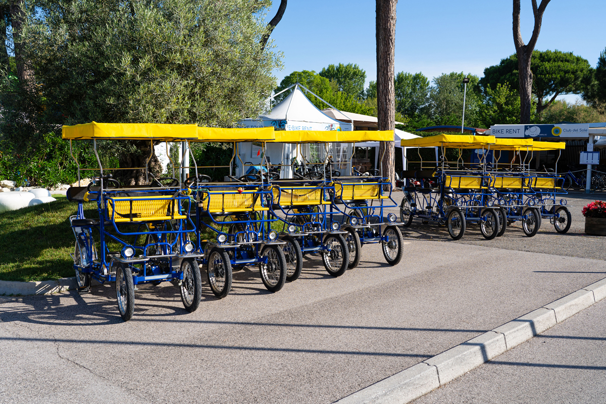 1 multifunkční bazén s plaveckou, dětskou a relaxační částí (přibližně od poloviny května do poloviny září), lehátka* a slunečníky*, stolní tenis, plážový volejbal, basketbalové hřiště, fotbalové hřiště, a tenisové kurty*, půjčovna* kol a elektrokol, prostor na údržbu a mytí kol, plážový servis*