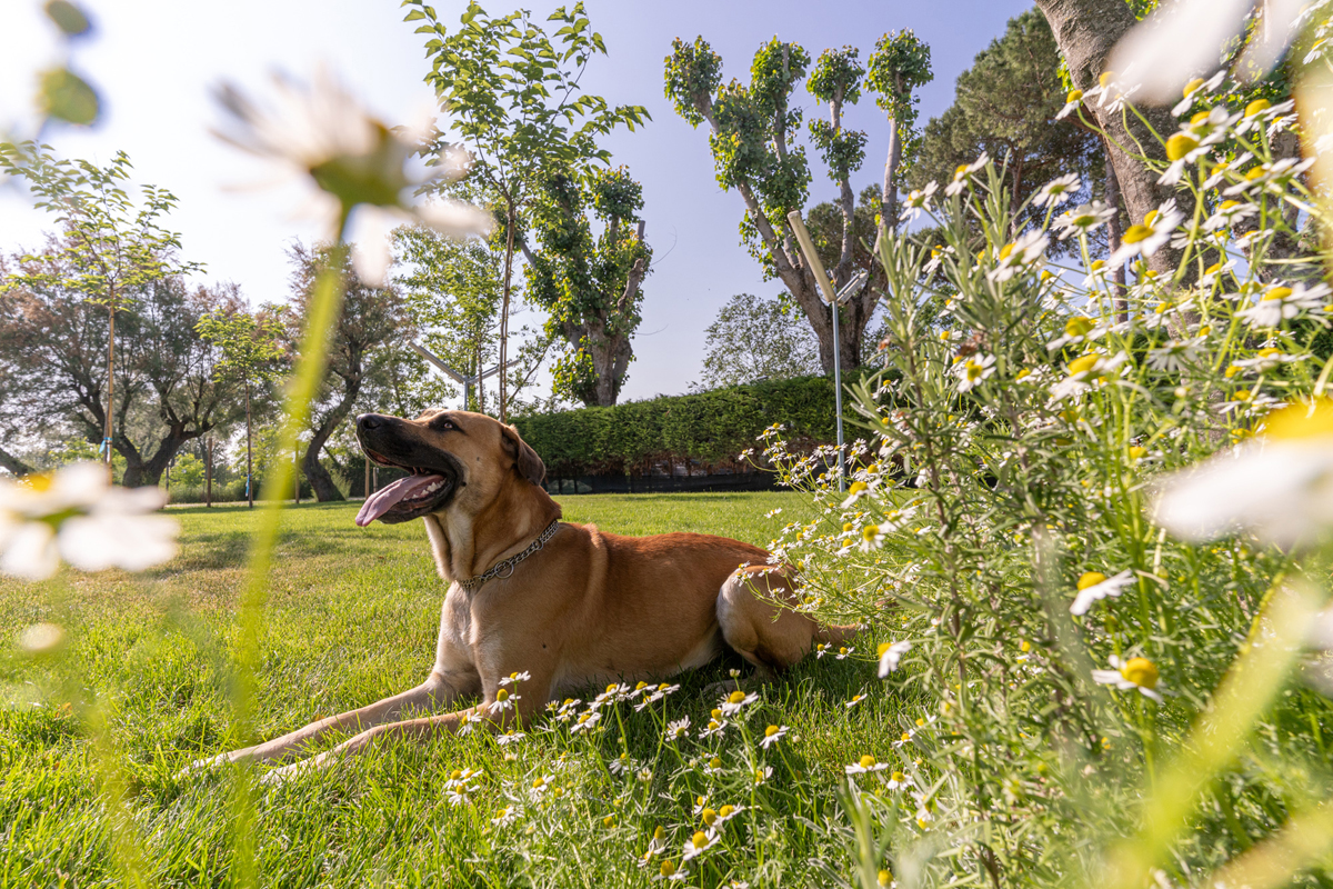 louka s agility prvky, sprcha, pláž bez možnosti koupání v moři