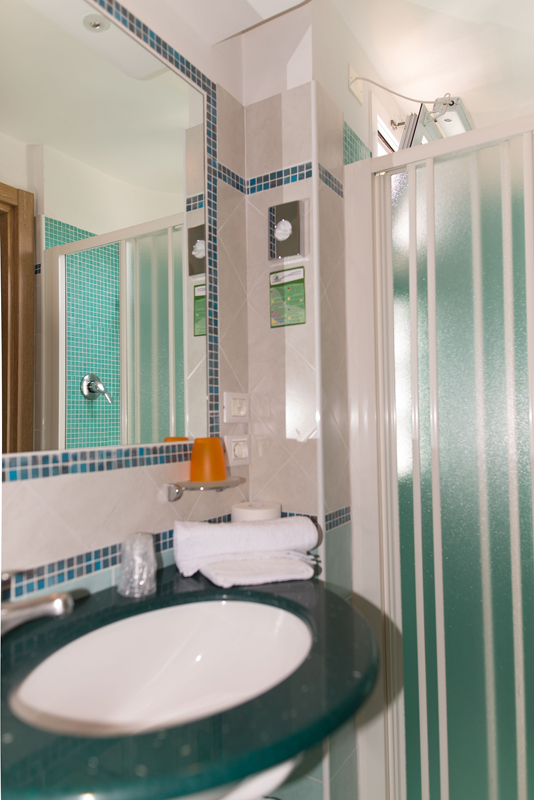 pokoj s manželskou postelí či 2 samostatnými lůžky, sociální zařízení se sprchou, balkon; 3. lůžko pevné či formou přistýlky, 4. lůžko vždy palanda