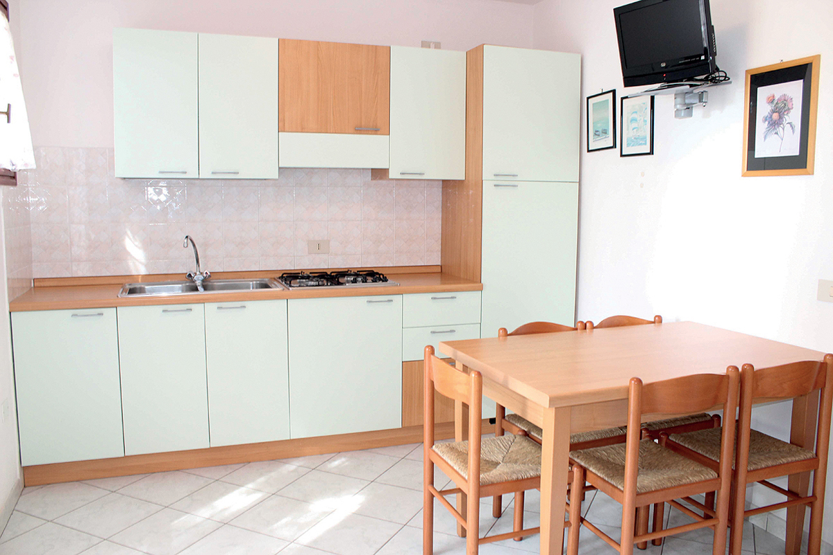 bilo 4 - 30 m² - 1 ložnice s manželskou postelí, obývací pokoj s kuchyňským koutem a rozkládacím gaučem pro 2 osoby, sociální zařízení se sprchou, terasa s předzahrádkou