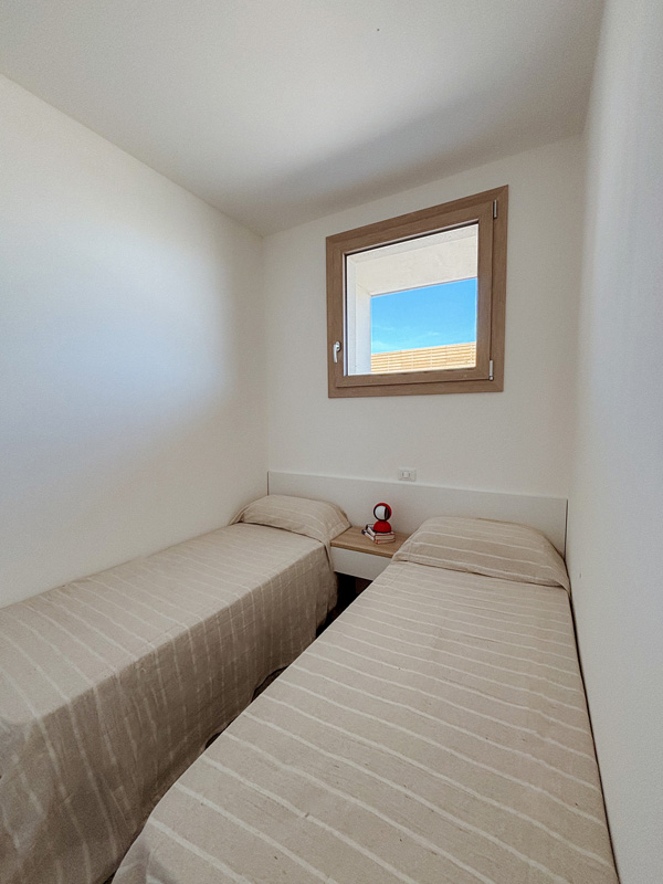 1 ložnice s manželskou postelí, 1 ložnice se 2 samostatnými lůžky, obývací pokoj s kuchyňským koutem a gaučem pro 1 osobu, sociální zařízení se sprchou, terasa