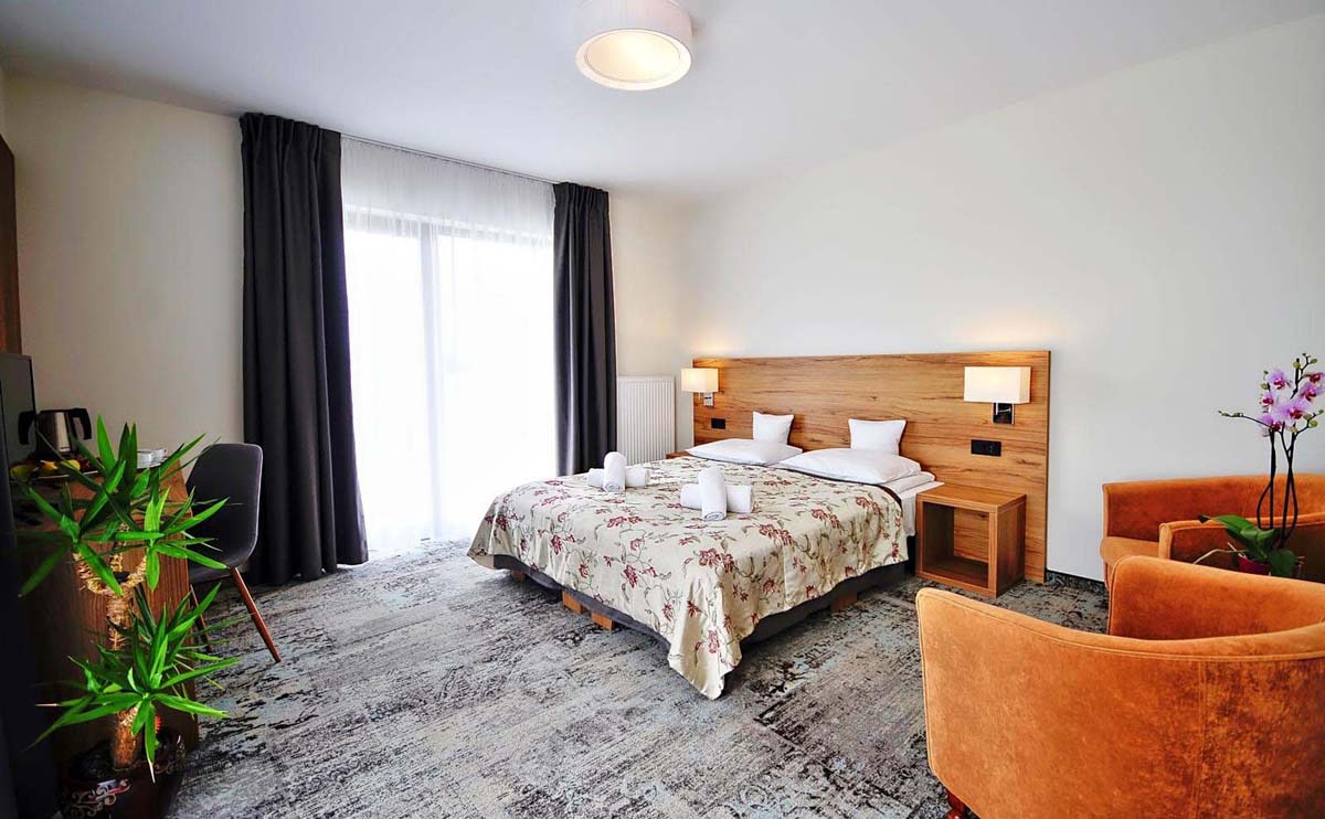 20 m² – pokoj s manželskou postelí, sociální zařízení se sprchou, balkón