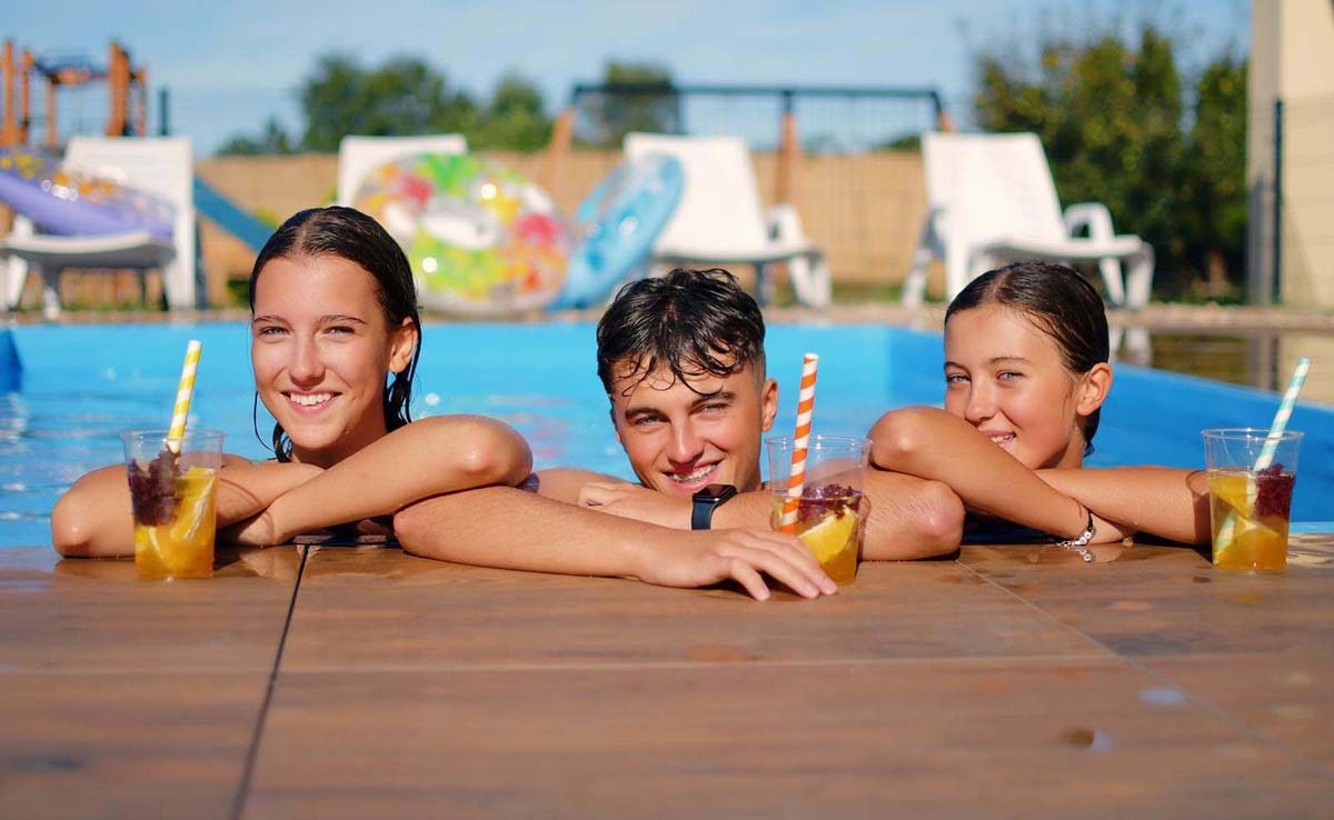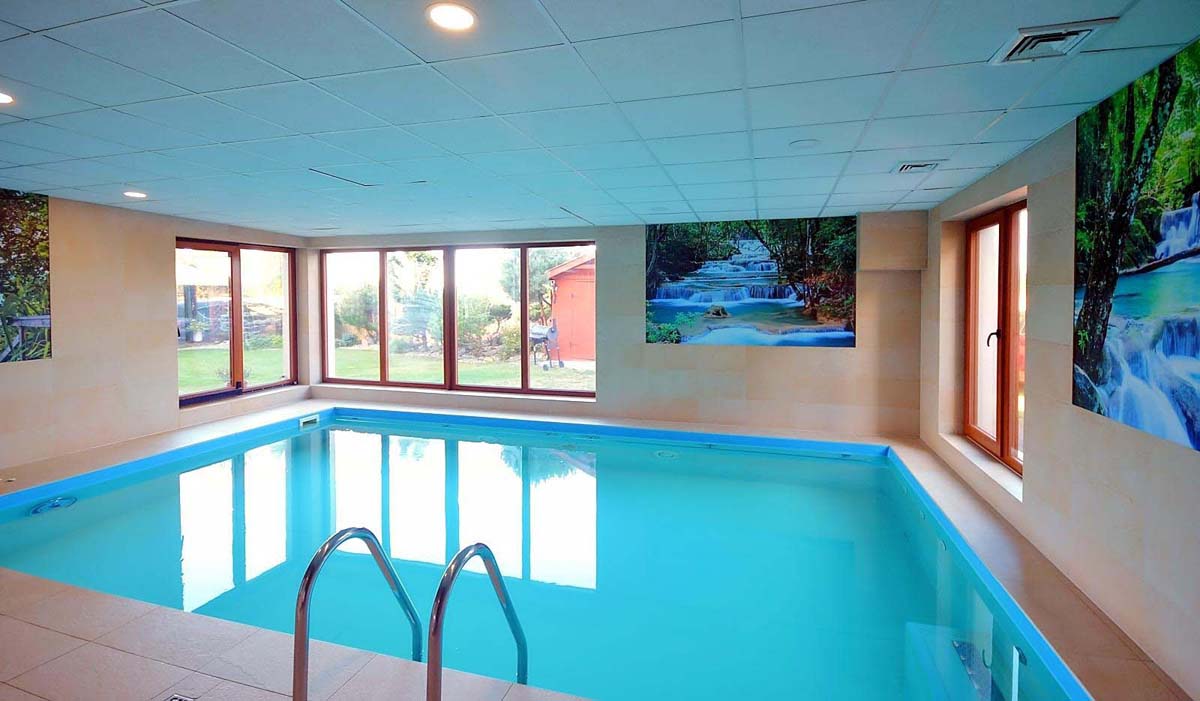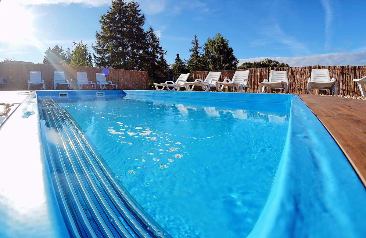 venkovní bazén 15 m² (červen až září v závislosti na počasí), vnitřní bazén 28 m², sauna, masáže*, kosmetické služby*, relaxační koutek, stolní fotbal*, půjčovna jízdních kol*