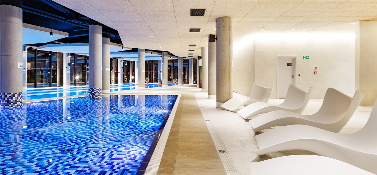 plavecký bazén (25 m), bazén pro děti, vířivka, parní lázeň, finská sauna, infrasauna, tepidarium, relaxační místnost, nadstandardně vybavené fitness centrum se stroji pro posilování, spinning, lezecká stěna pro děti a dospělé (nutná vlastní sportovní obuv), masáže*, kosmetické služby a procedury*