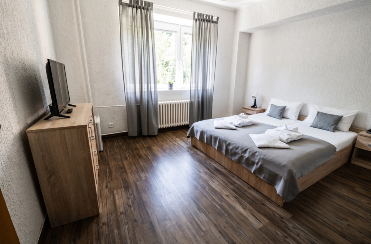 pokoj s manželskou postelí či 2 samostatnými lůžky, sociální zařízení