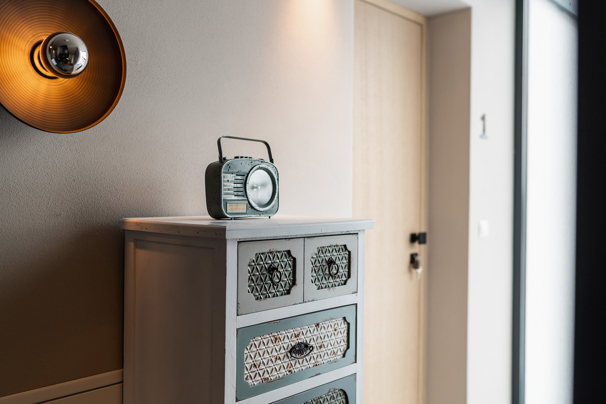 40 m² – 1 ložnice s manželskou postelí, obývací pokoj s kuchyňským koutem a gaučem pro 1 osobu, sociální zařízení, balkon