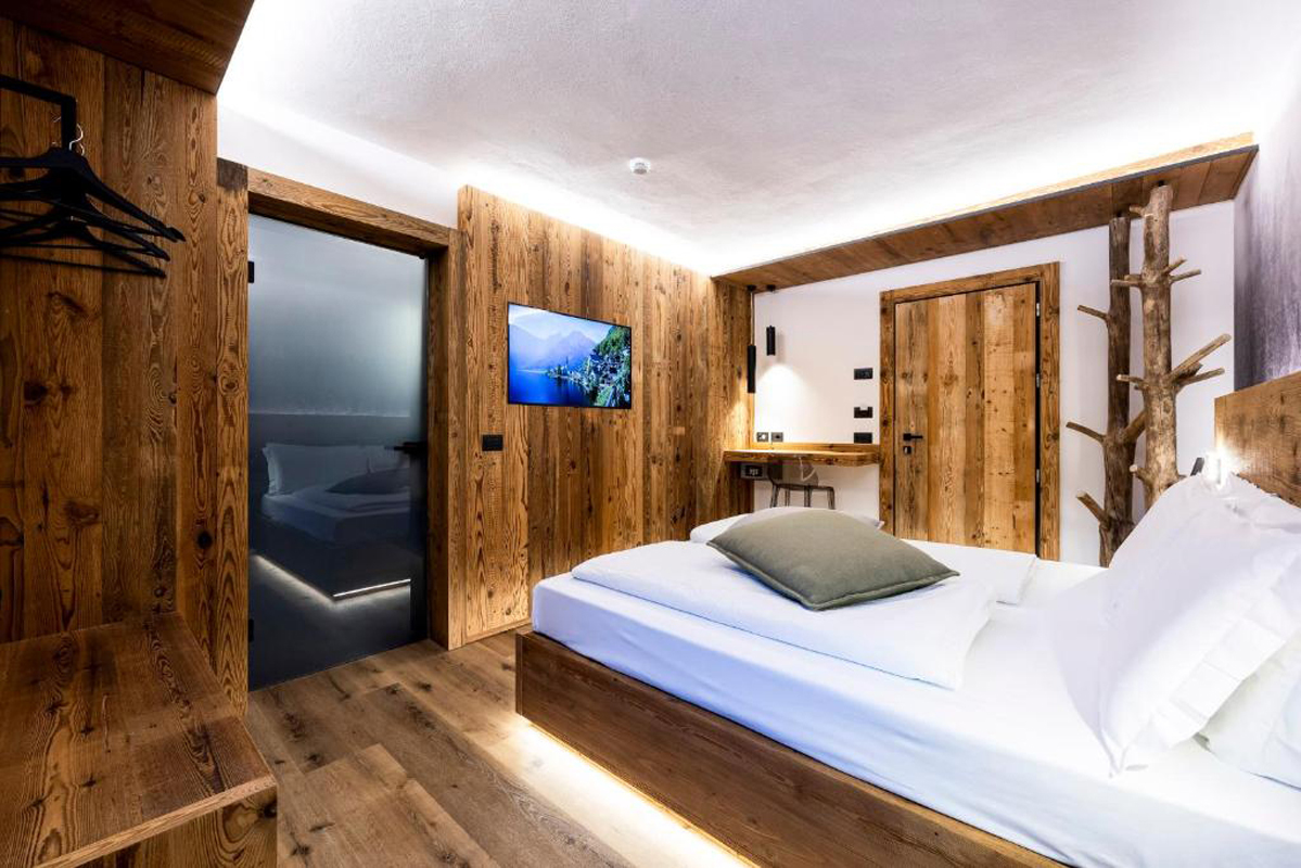 12 m² – pokoj s manželskou postelí s výhledem na jezero, sauna, sociální zařízení se sprchou; pokoj po kompletní rekonstrukci
