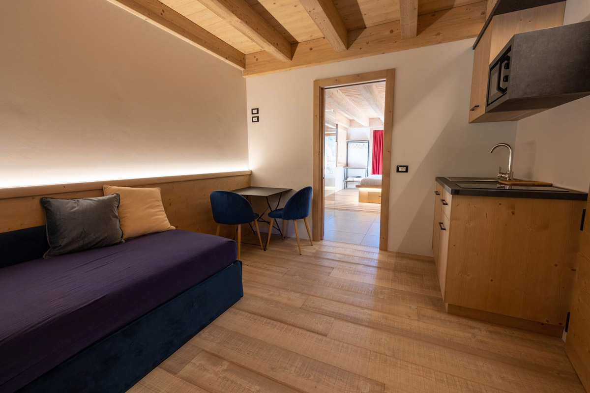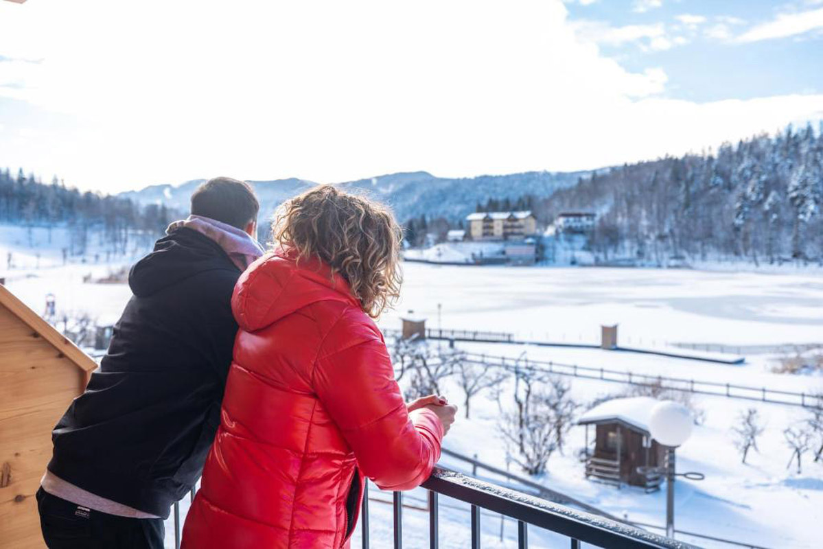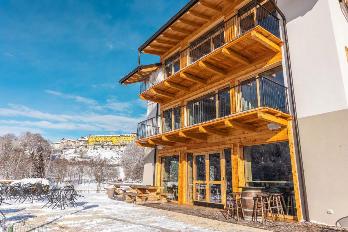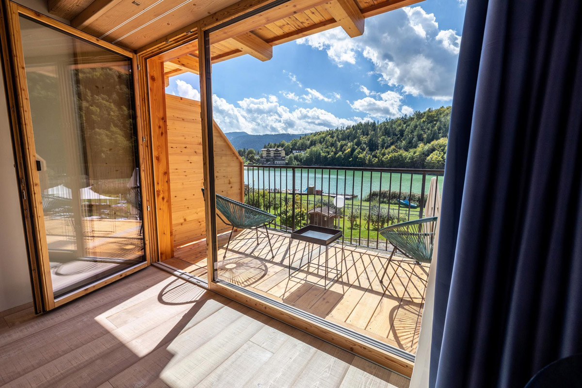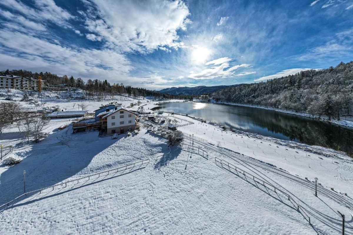 krásně architektonicky řešený malý aparthotel s romantickou pozicí na břehu jezera Lavarone