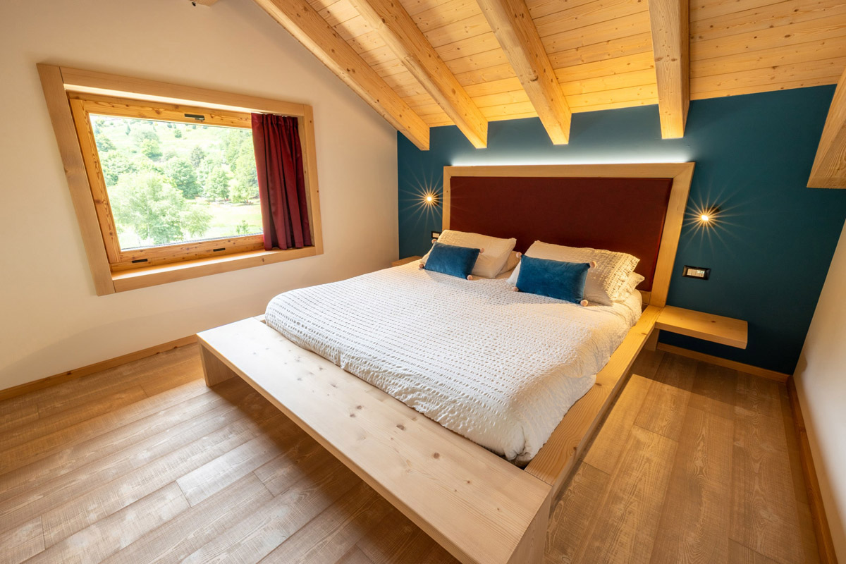 55 m² - ložnice s manželskou postelí v neuzavřeném mezipatře, obývací pokoj s 2 samostatnými lůžky a případně přistýlkou pro 1 osobu, obytná kuchyně se sedací částí, sociální zařízení, terasa s výhledem na jezero