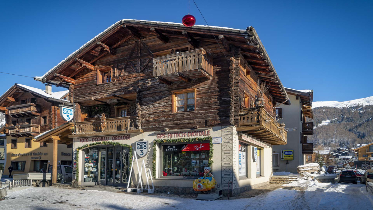 jeden z apartmánových domů ležících přímo v centru Livigna na pěší zóně