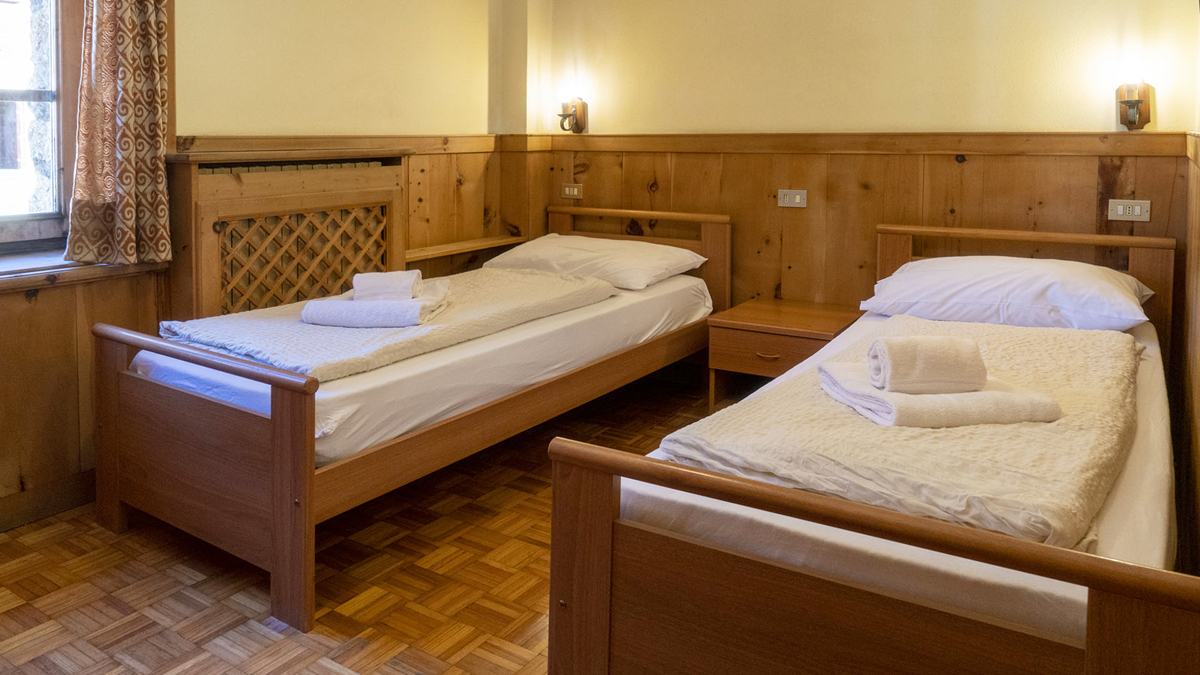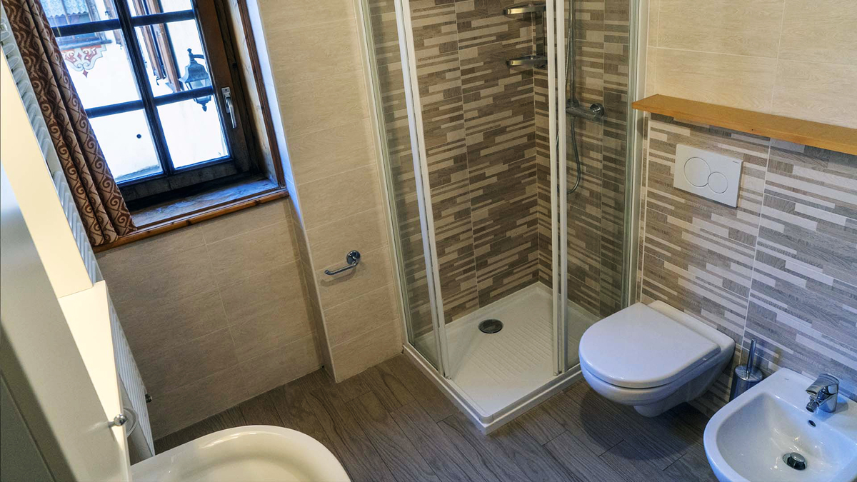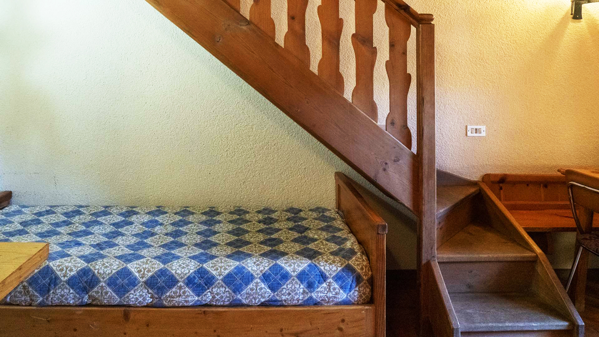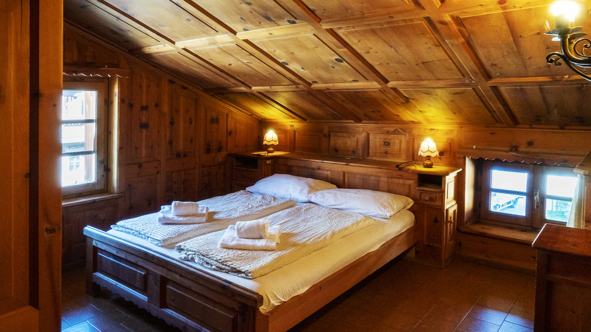 trilo 4 - 1 ložnice s manželskou postelí či 2 samostatnými lůžky a balkonem, 1 ložnice se 2 samostatnými lůžky (možno spojit), obývací pokoj s kuchyňským koutem, sociální zařízení se sprchou; apartmán je situován v podkroví