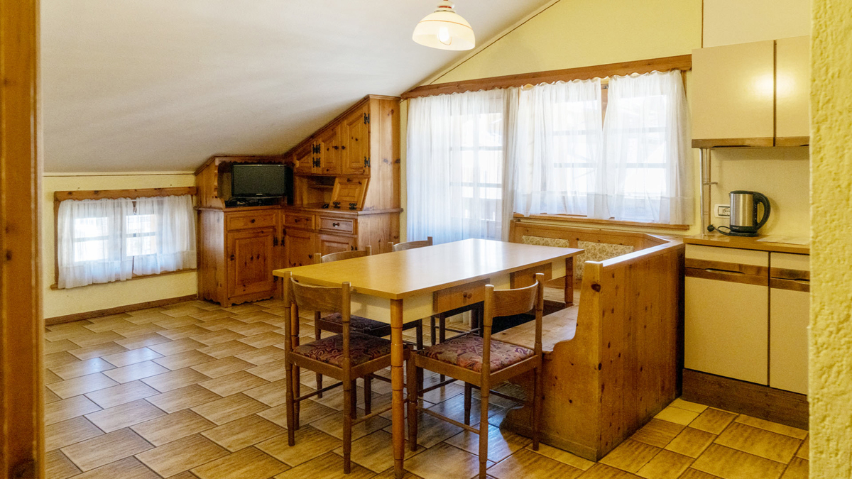 trilo 6 - 1 ložnice s manželskou postelí či 2 samostatnými lůžky, 1 ložnice se 2 samostatnými lůžky, obývací pokoj s kuchyňským koutem a rozkládacím gaučem pro 2 osoby, sociální zařízení se sprchou, balkon; apartmán je situován v podkroví