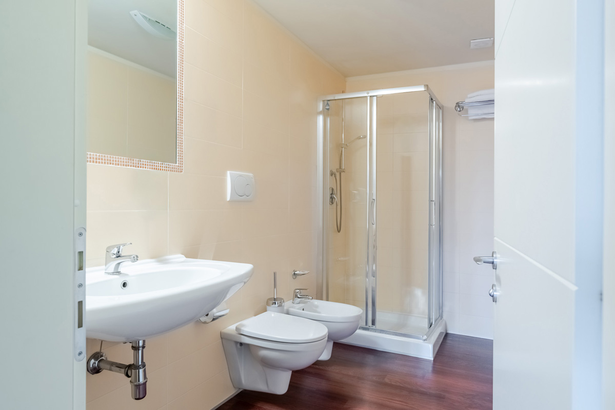 pokoj s manželskou postelí o šíři 140 cm, sociální zařízení zpravidla se sprchou, zpravidla balkon