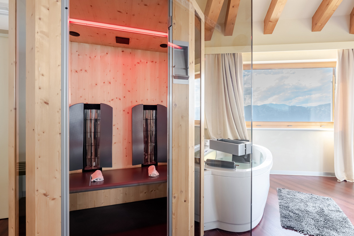 bazén 40 m² s vířivkou až pro 8 osob, finská sauna#, biosauna#, pára#, multifunkční sprcha#, relaxační koutek# s lehátky a hudbou, masáže*, kosmetické služby*, biliár, šipky, stolní fotbal; služby označené # mohou využívat děti až od 16 let, děti do 16 let mohou využívat jen bazén a to jen omezi 14.00 až 17.00 hodin; v rámci relaxačního centra jsou zdarma nabízeny též bylinkové čaje; pro pobyty na 5 a 7 nocí zdarma 1 masáž / dospělá osoba / pobyt v délce 25 minut (nutná včasná rezervace)