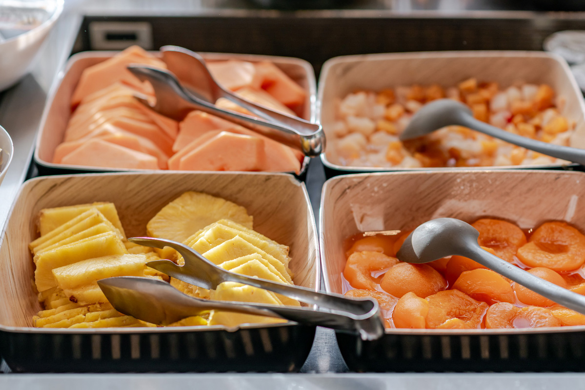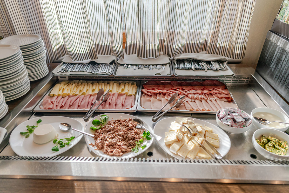 večeře - servírované menu s výběrem ze 3 teplých předkrmů, 3 hlavních jídel a 3 dezertů, studené předkrmy, přílohy, saláty a ovoce formou bufetu, nápoje za poplatek; 1x týdně typicky místní večeře